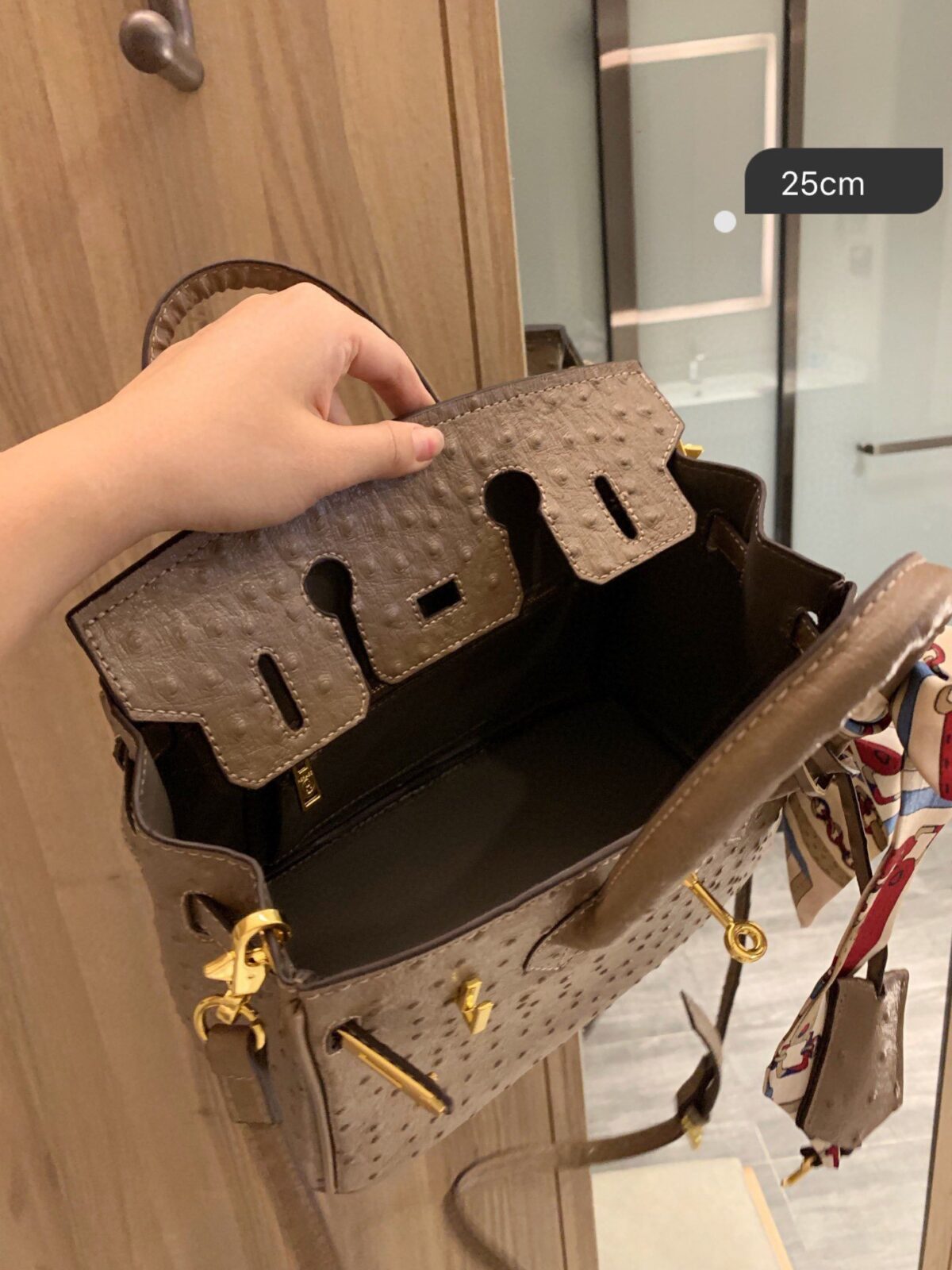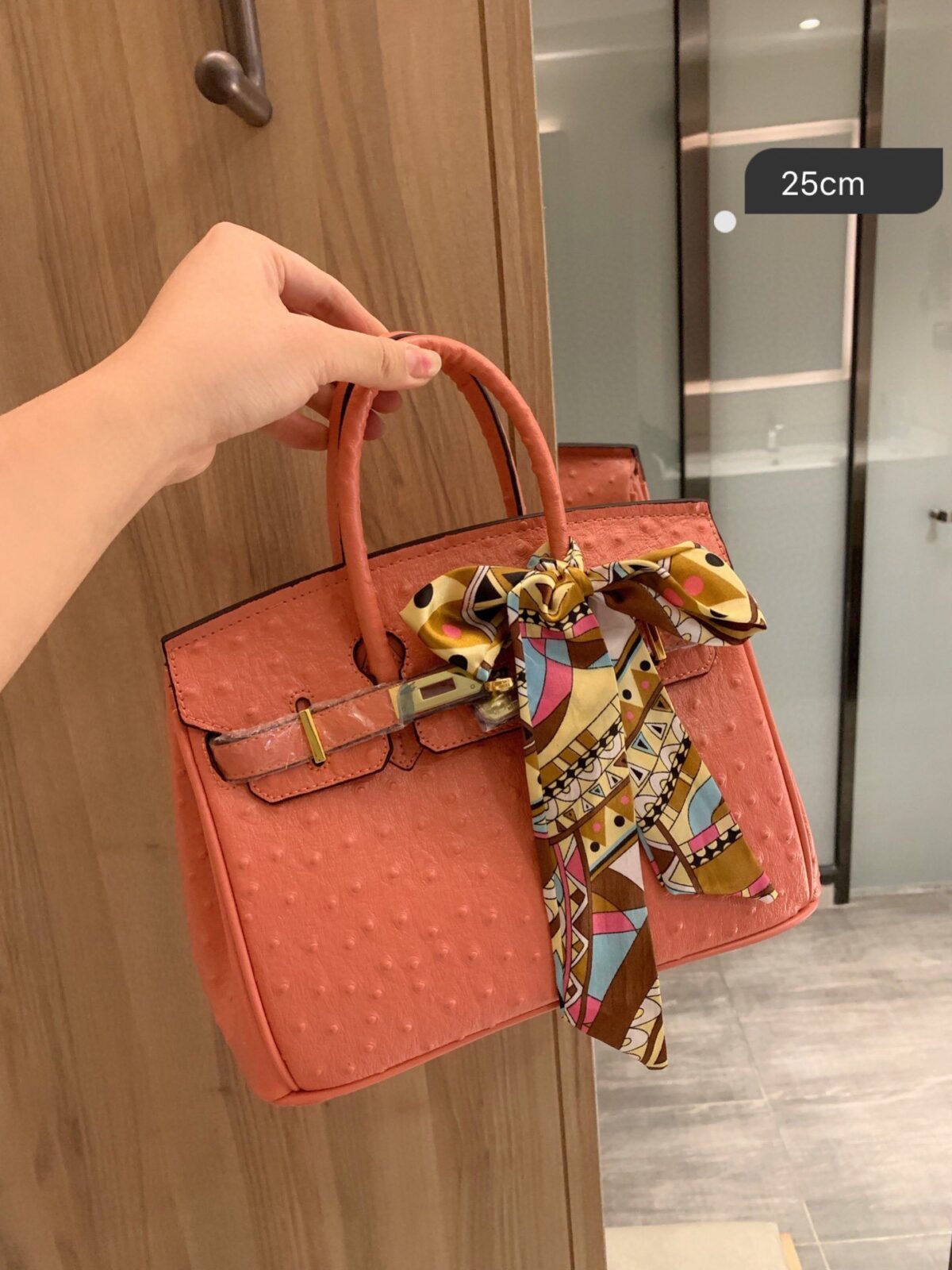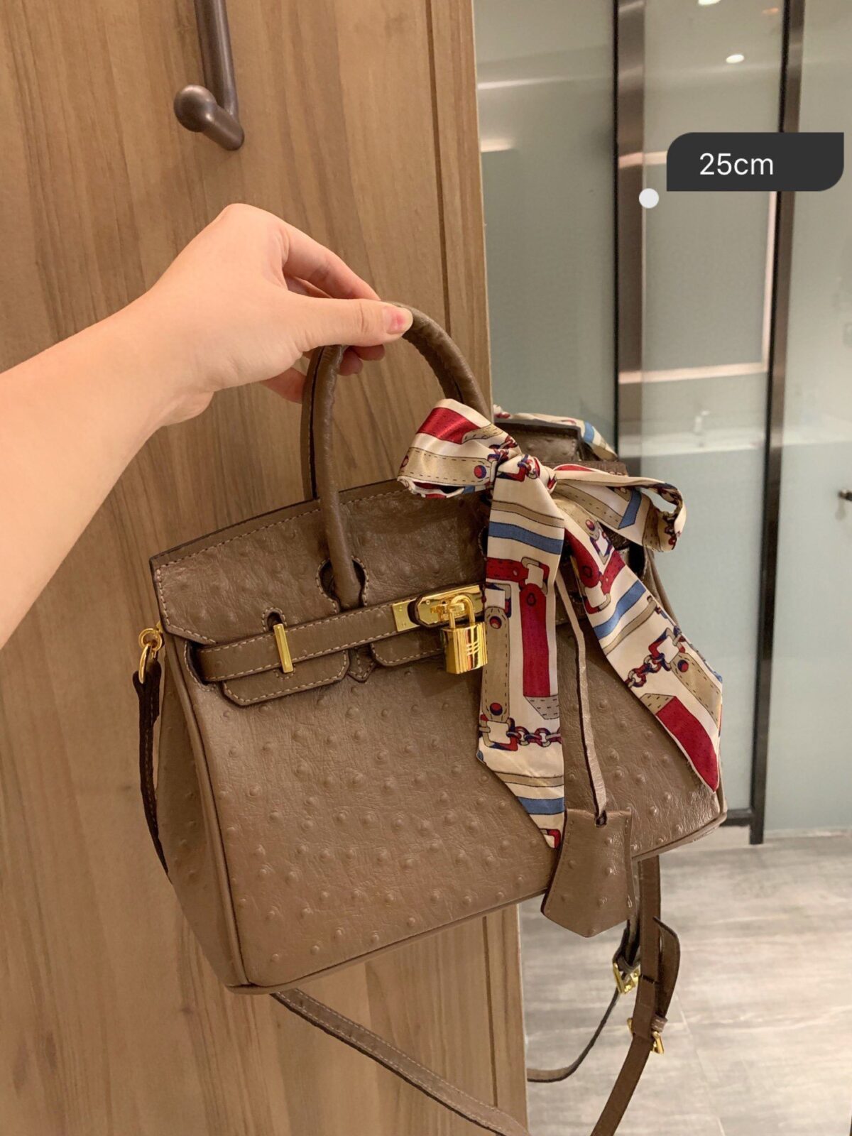 用一款尽显精致格调的单品,提升您的配饰品味。汲取时尚史上最具标志性的包型灵感,我们的“鸵鸟纹柏金风格手袋”不仅仅是一个包袋,更是优雅、力量与卓越品味的宣言。专为那些懂得欣赏生活之美的现代女性而设计,这款25厘米的杰作完美融合了高端美学与日常实用功能。