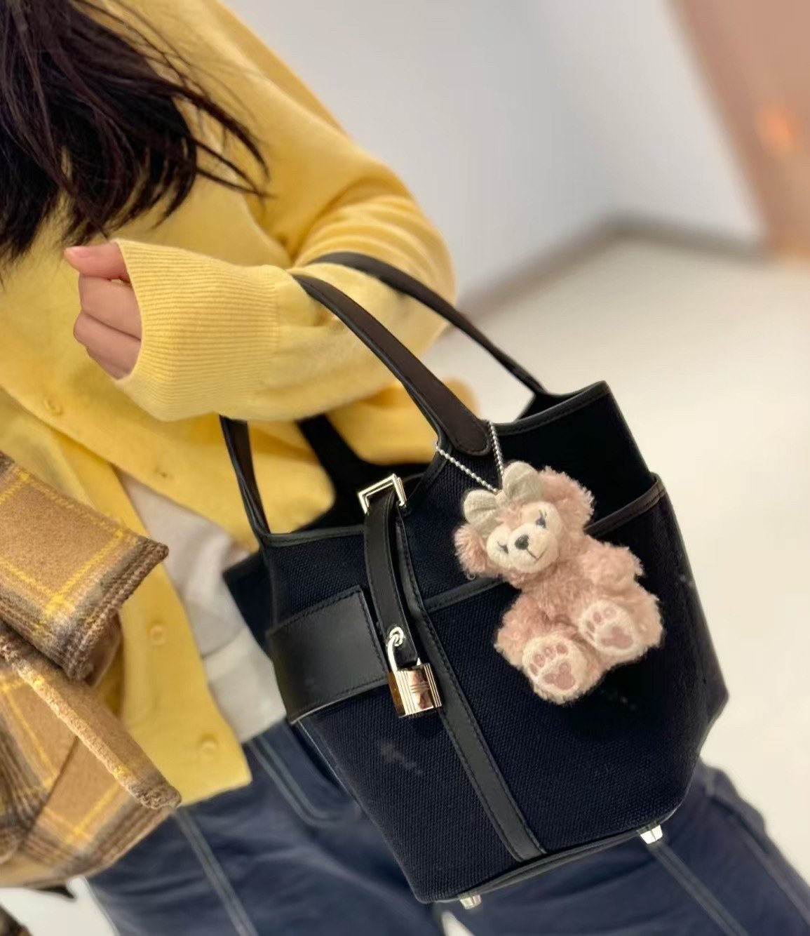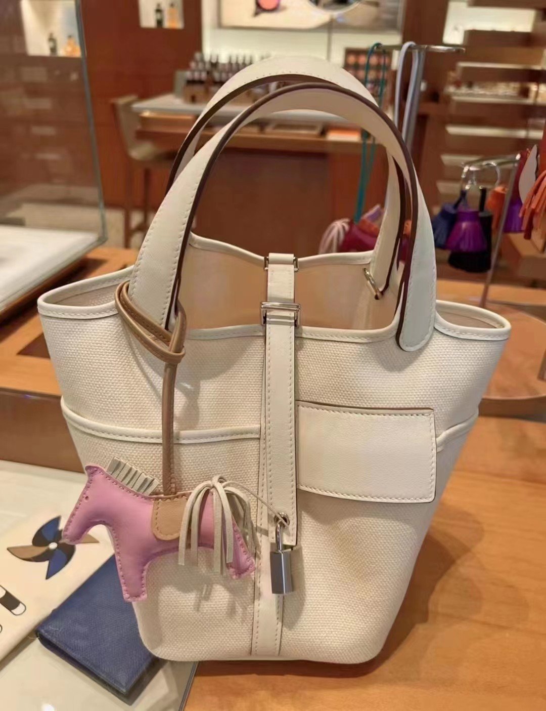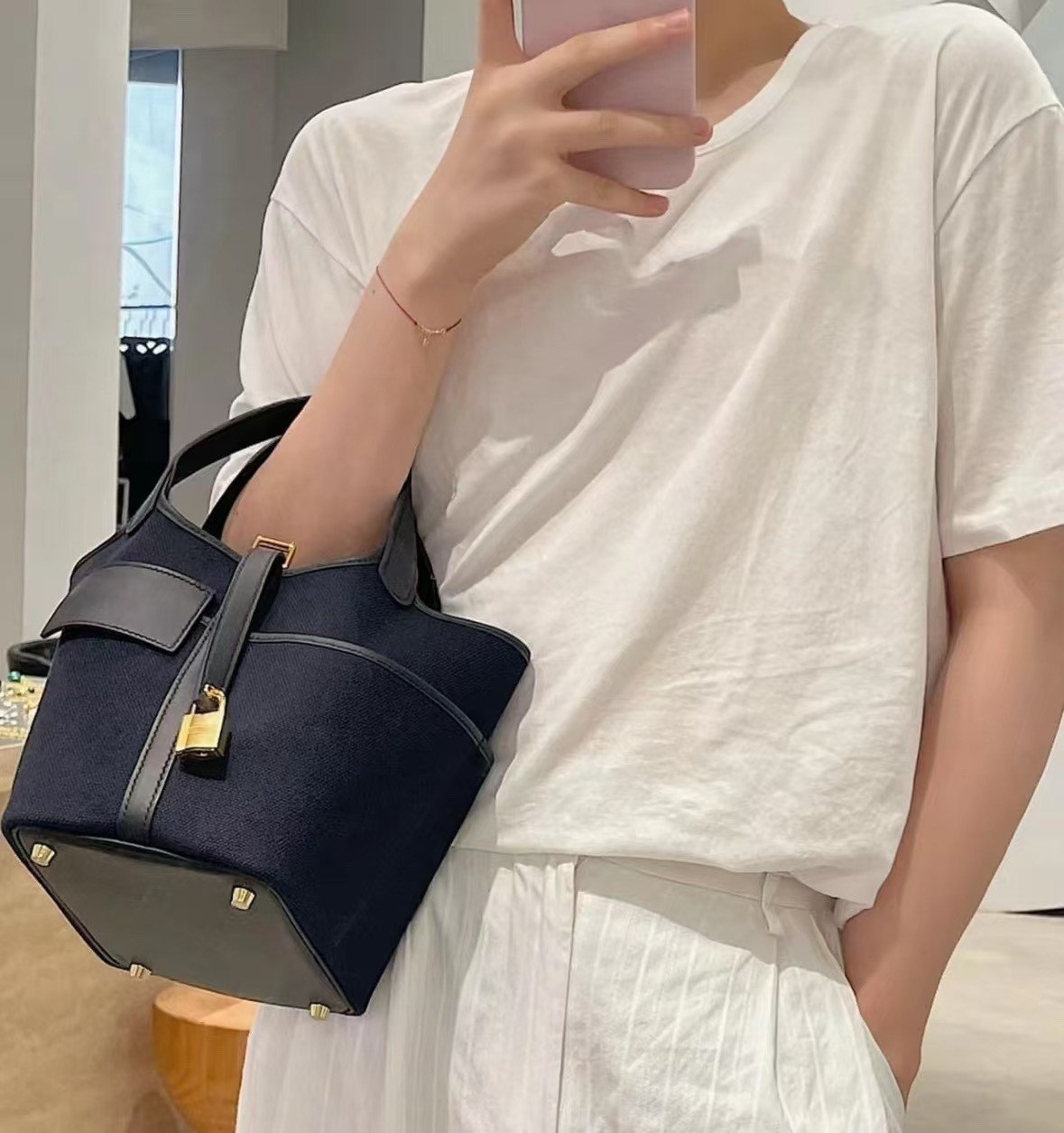 包袋内部空间依然宽敞,足以轻松容纳大屏智能手机、小巧的钱包、化妆品以及一串钥匙。包口处由标志性的皮革束带以及那枚极具辨识度的钯金或镀金挂锁(Cadenas)加以固定,既提供了安全保障,又散发出爱马仕品牌独有的璀璨光泽。