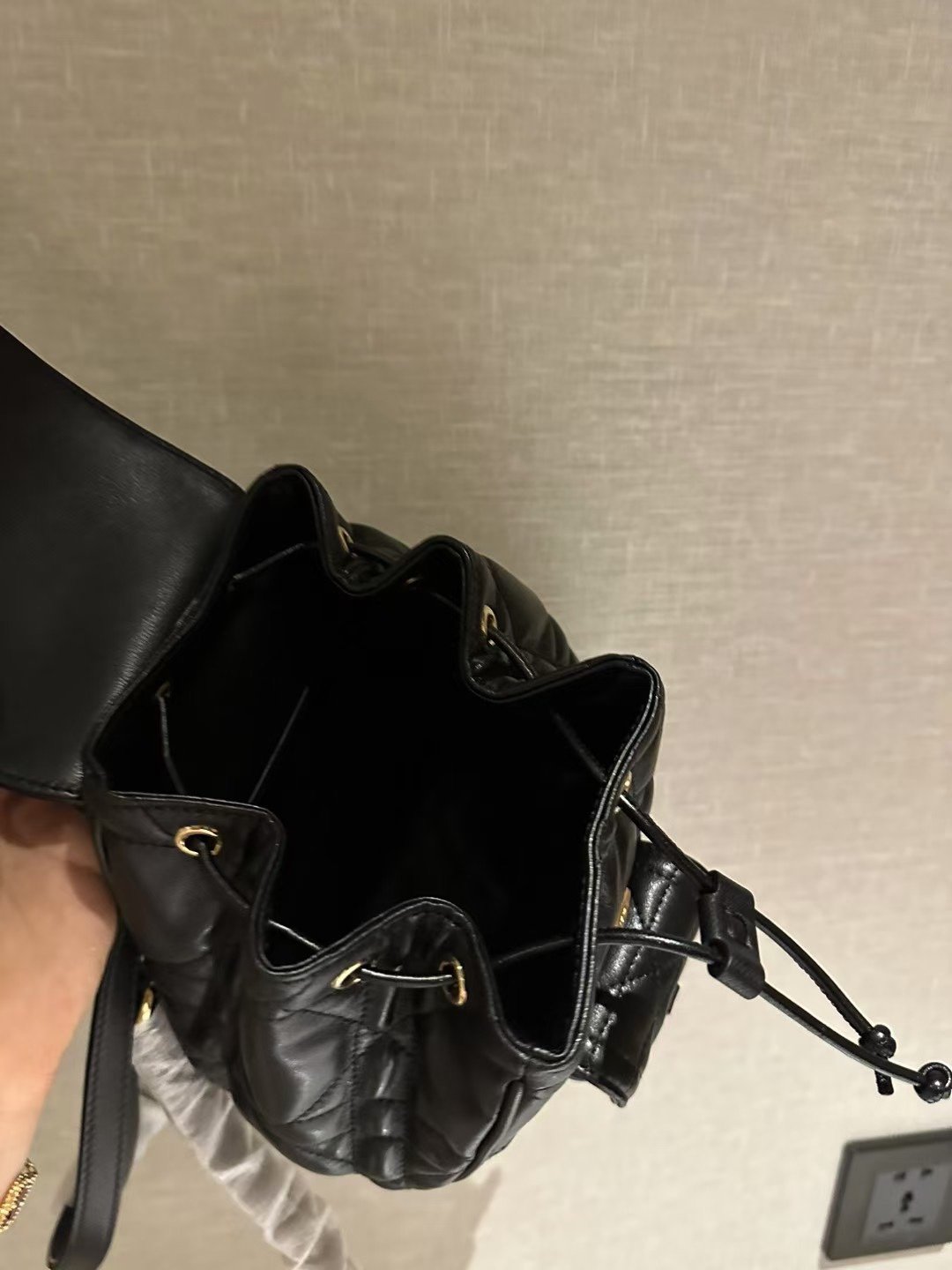 **设计美学:标志性的藤格纹绗缝** 这款包袋采用了永恒经典的“藤格纹”(Cannage)绗缝工艺,这种几何图案设计营造出一种令人惊叹的立体建筑美感。每一针每一线的精准绗缝,都凝聚了工匠数小时的潜心劳作,确保每一个菱形格纹都能完美对齐、丝毫不差。包袋的设计在经典翻盖闭合结构的基础上,辅以安全的内层抽绳束口,以及饰有镀金搭扣的实用前置口袋;这一设计巧思既确保了物品存放的安全性,又让您能够轻松便捷地取用随身必备物品。