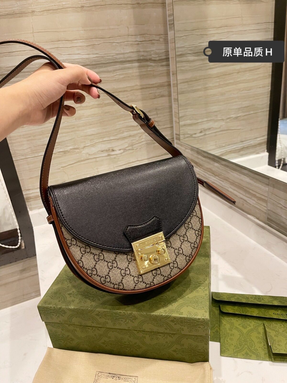 Gucci Padlock 半月马鞍包不仅仅是一时的流行风尚,更是一件极具多功能性的经典投资单品。其独特的包身轮廓致敬了 20 世纪 70 年代盛行的马术风格马鞍包,同时保留了现代意大利奢华品牌所特有的利落、简洁的线条感。无论您是将其搭配剪裁合体的西装外套与牛仔裤,打造都市摩登的时尚造型;还是搭配飘逸的碎花连衣裙,出席花园派对,这款包袋都能瞬间提升您的整体穿搭格调。