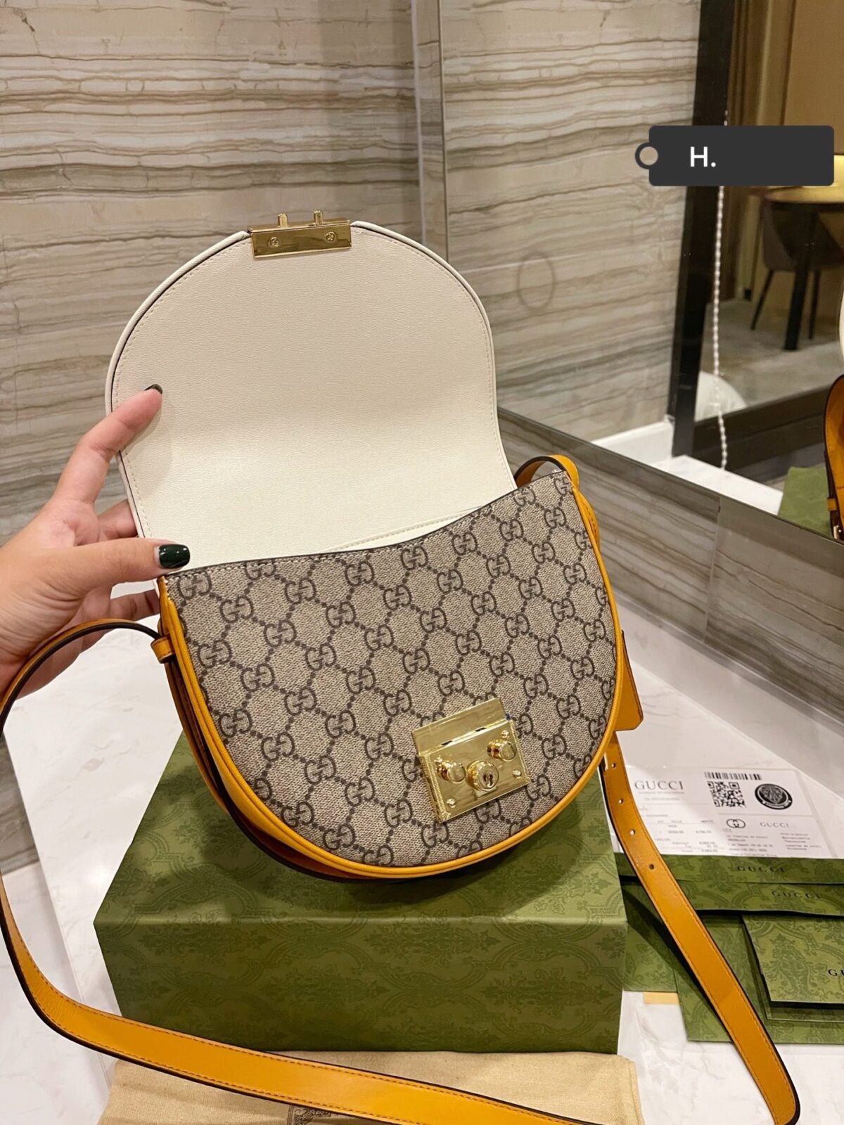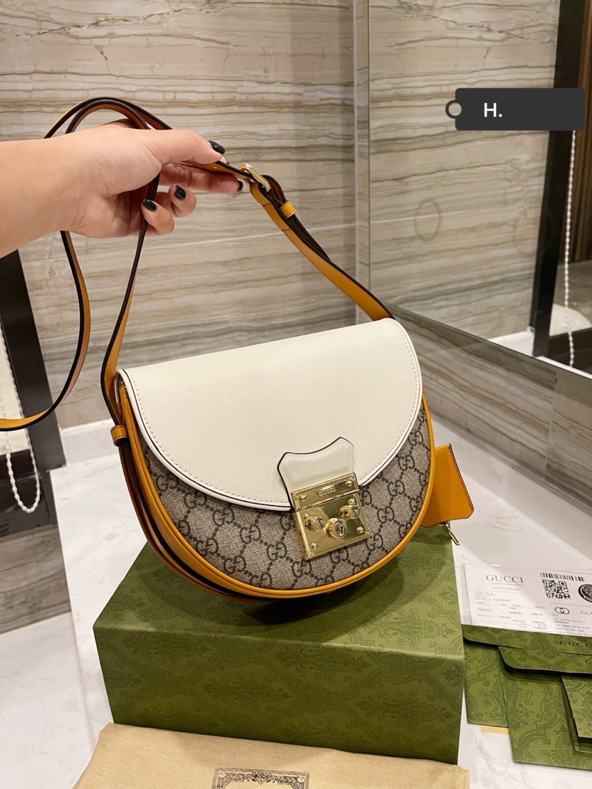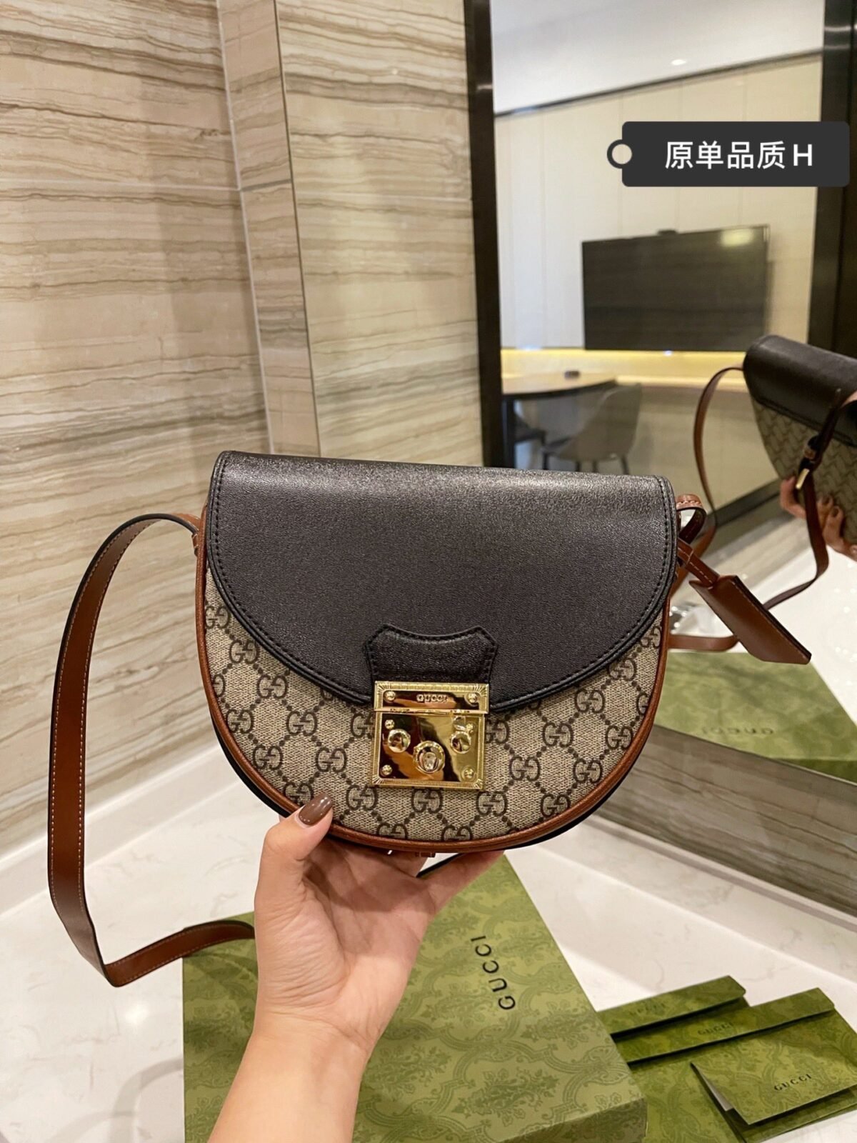 成为第一个评论者 “Gucci Padlock 小型 GG Supreme 古驰半月形马鞍包 22cm 2021春夏系列皮革单肩包”
