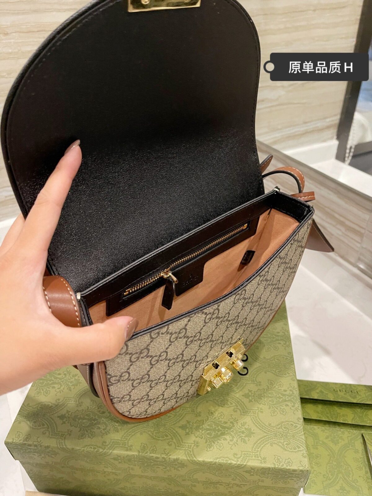 材质:GG Supreme 帆布与光滑小牛皮