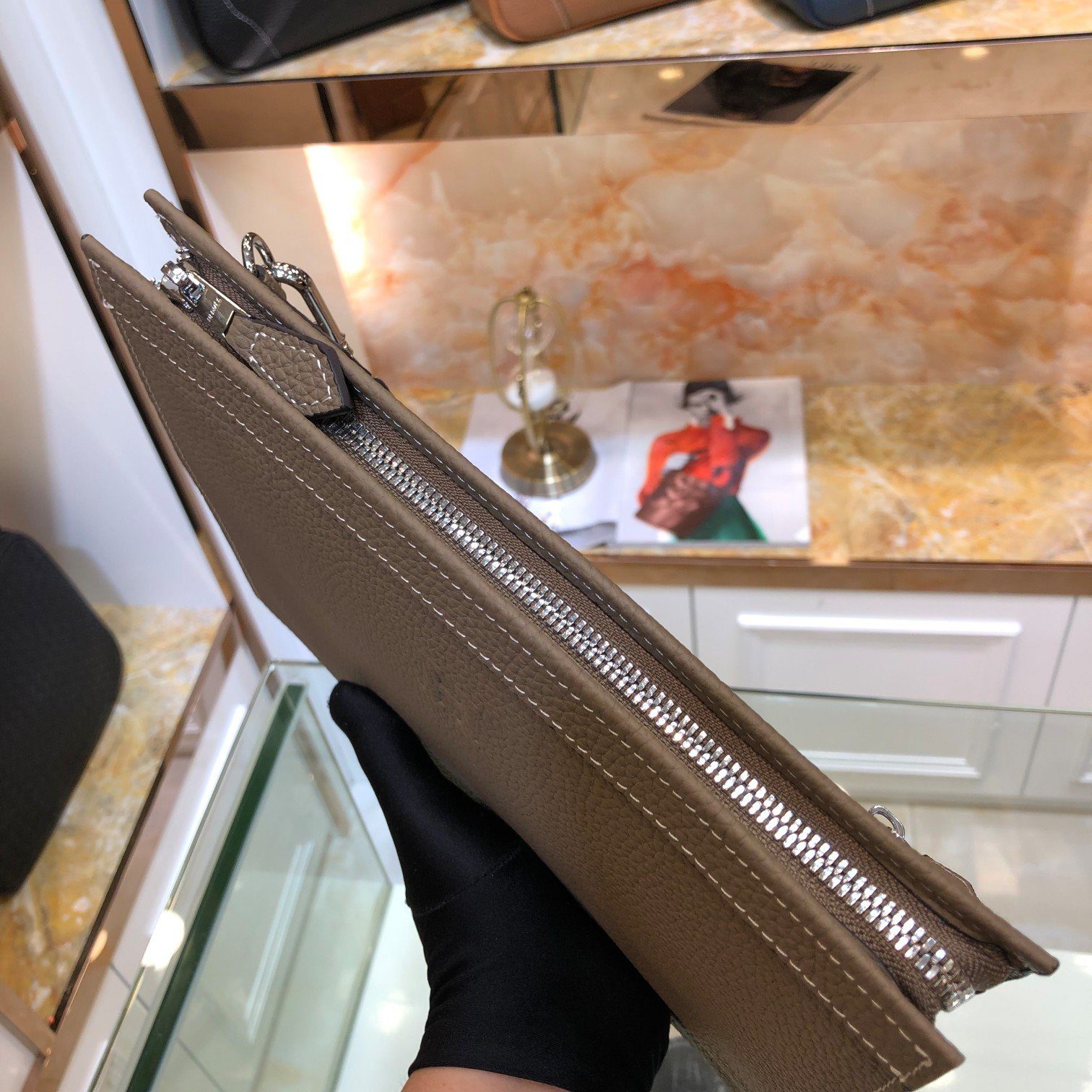 休闲风尚与实用主义的完美结合——探索爱马仕(Hermès)2021年最新款男士手拿包。这款包袋将休闲格调与实用功能巧妙融合,廓形设计舒适随性,是追求低调奢华的现代男士的理想之选。包身正面中央饰有浮雕式“H”字母标志,既彰显了品牌的标志性特色,又保持了恰到好处的内敛风度。