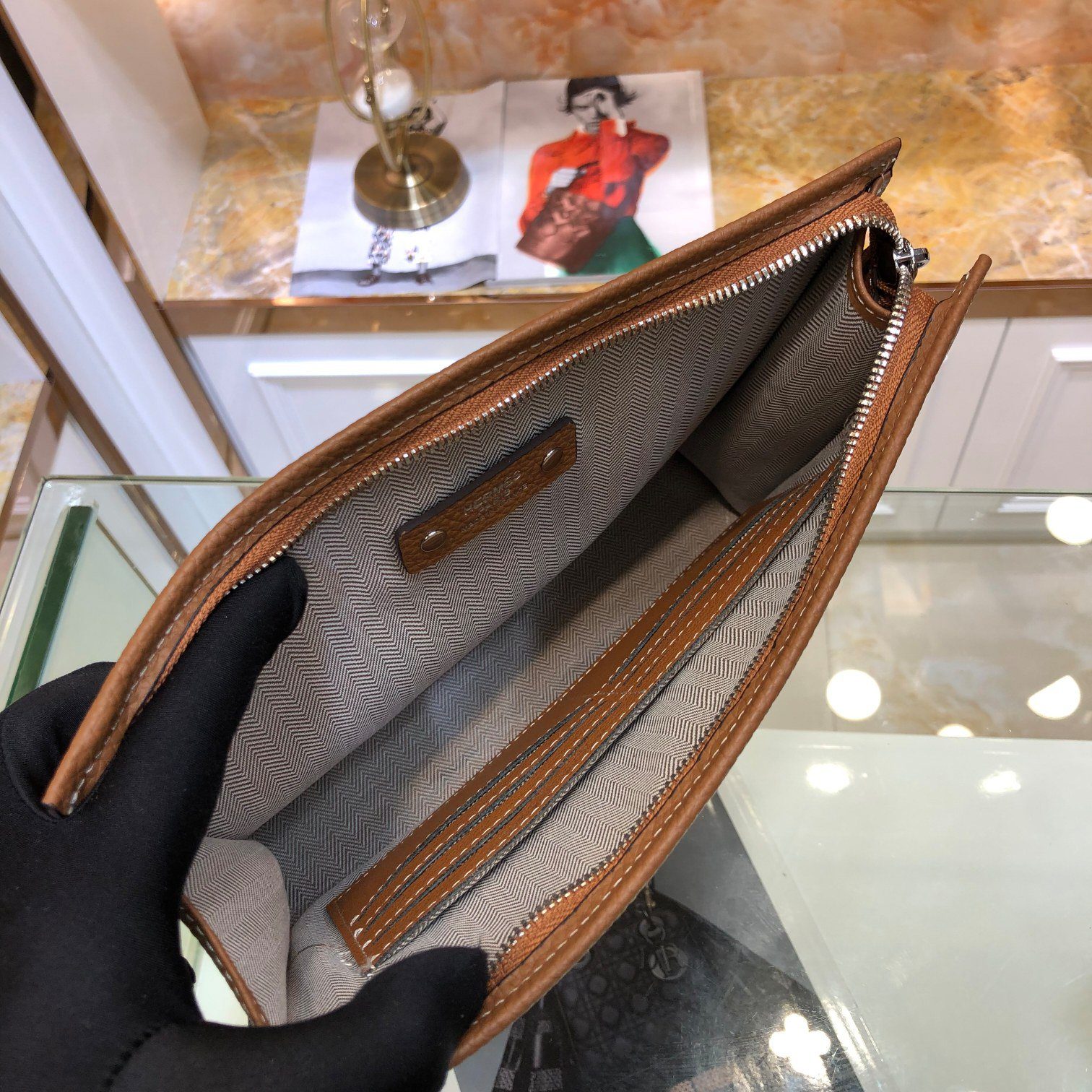 爱马仕 男士休闲 H logo 腕带式棕色手拿包