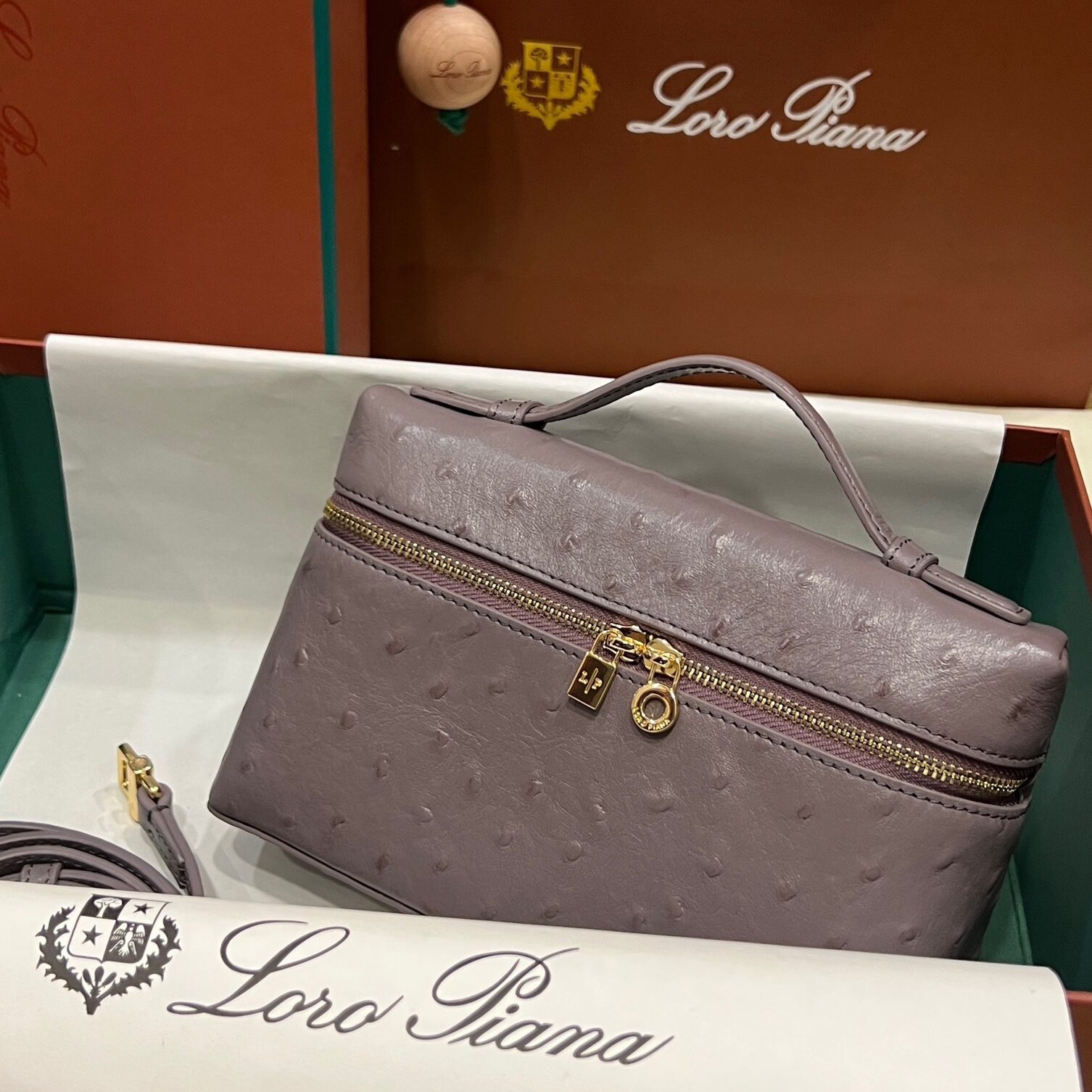 **异域风情与极简奢华** Loro Piana Extra Pocket L19 是现代鉴赏家的终极配饰。这款包袋选用奢华的鸵鸟皮精制而成,凭借其丰润的质感和独特的羽毛孔纹理,将“静奢”(Quiet Luxury)美学提升至全新境界,带来无与伦比的触感体验。
