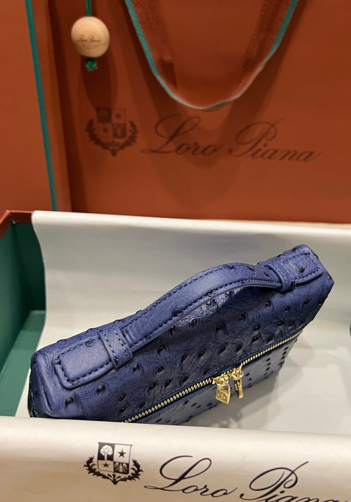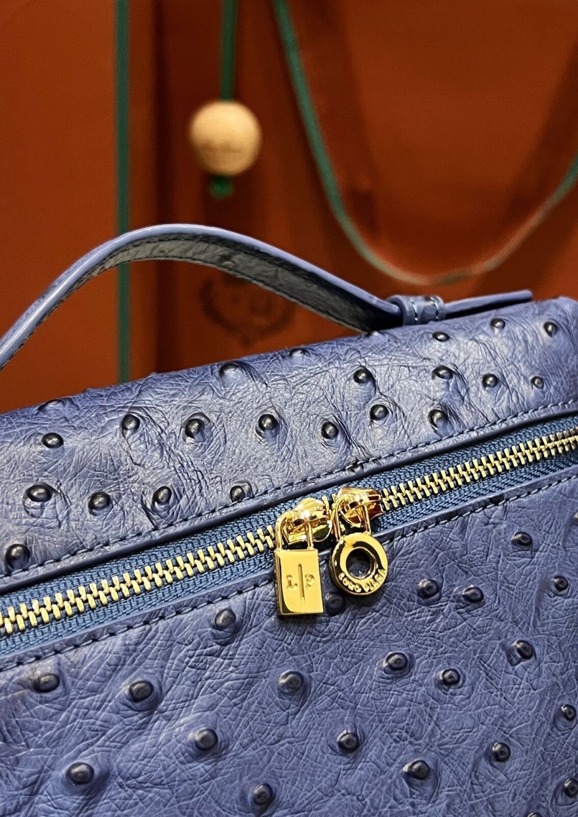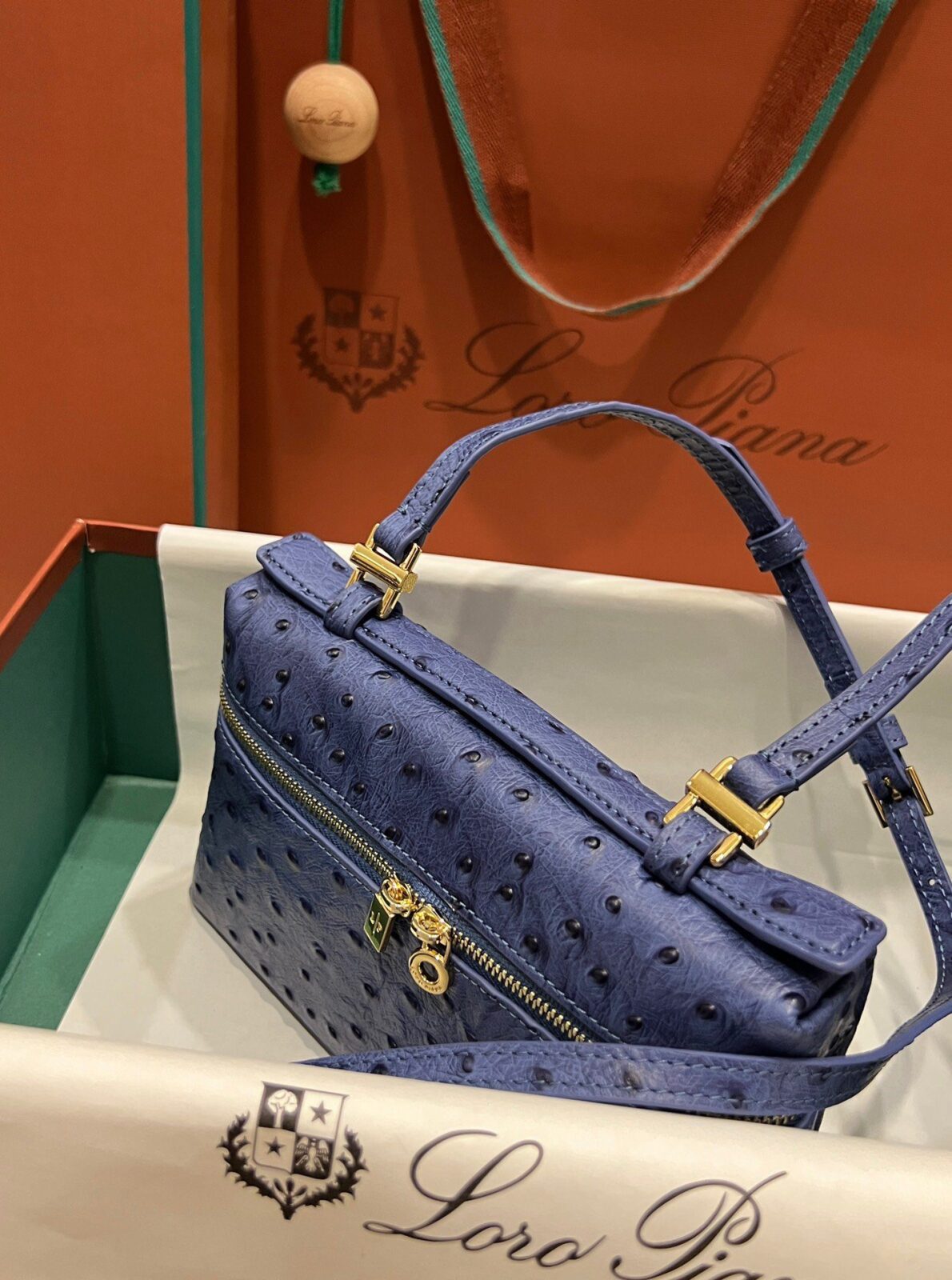 **异域风情与极简奢华** Loro Piana Extra Pocket L19 是现代鉴赏家的终极配饰。这款包袋选用奢华的鸵鸟皮精制而成,凭借其丰润的质感和独特的羽毛孔纹理,将“静奢”(Quiet Luxury)美学提升至全新境界,带来无与伦比的触感体验。