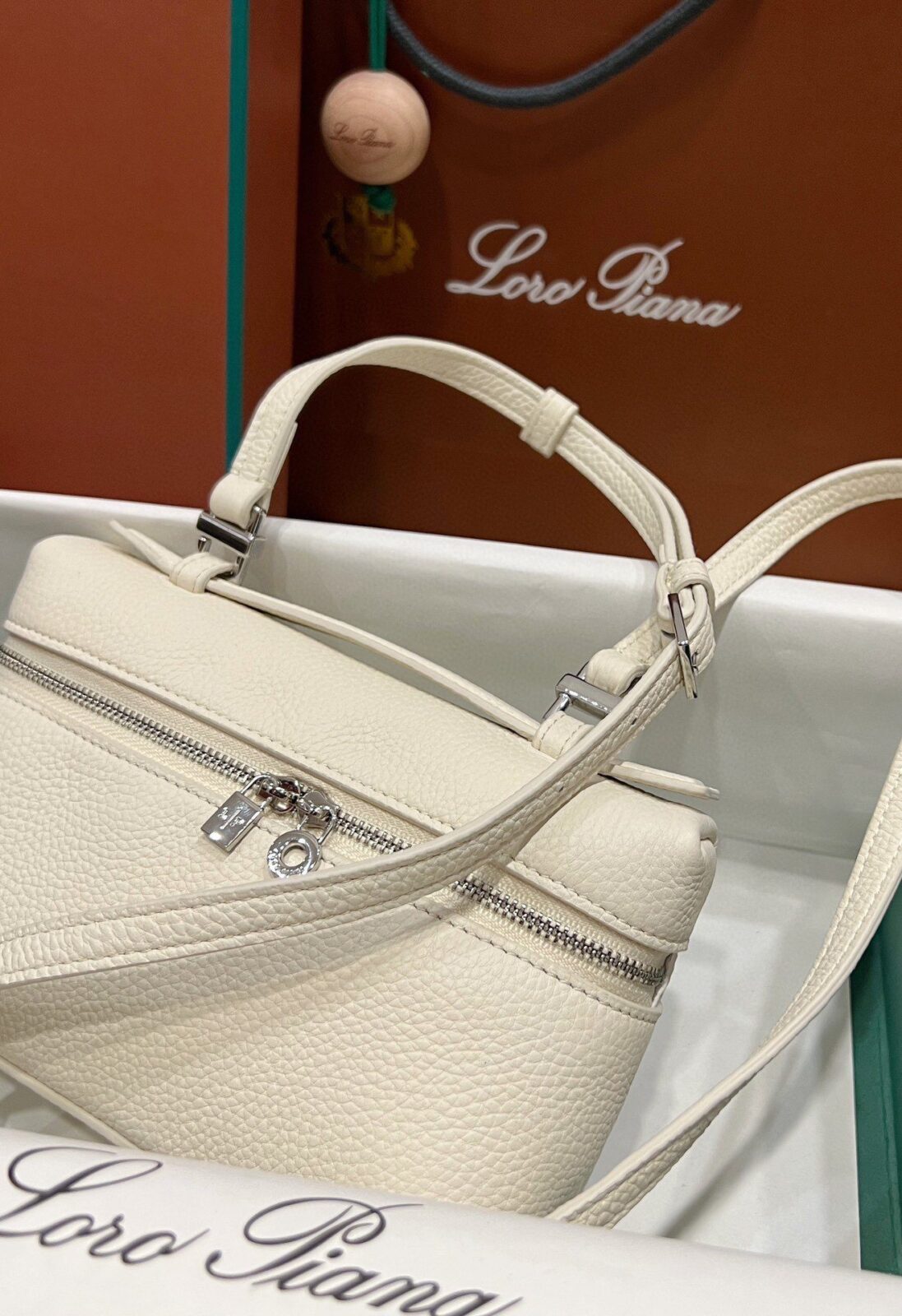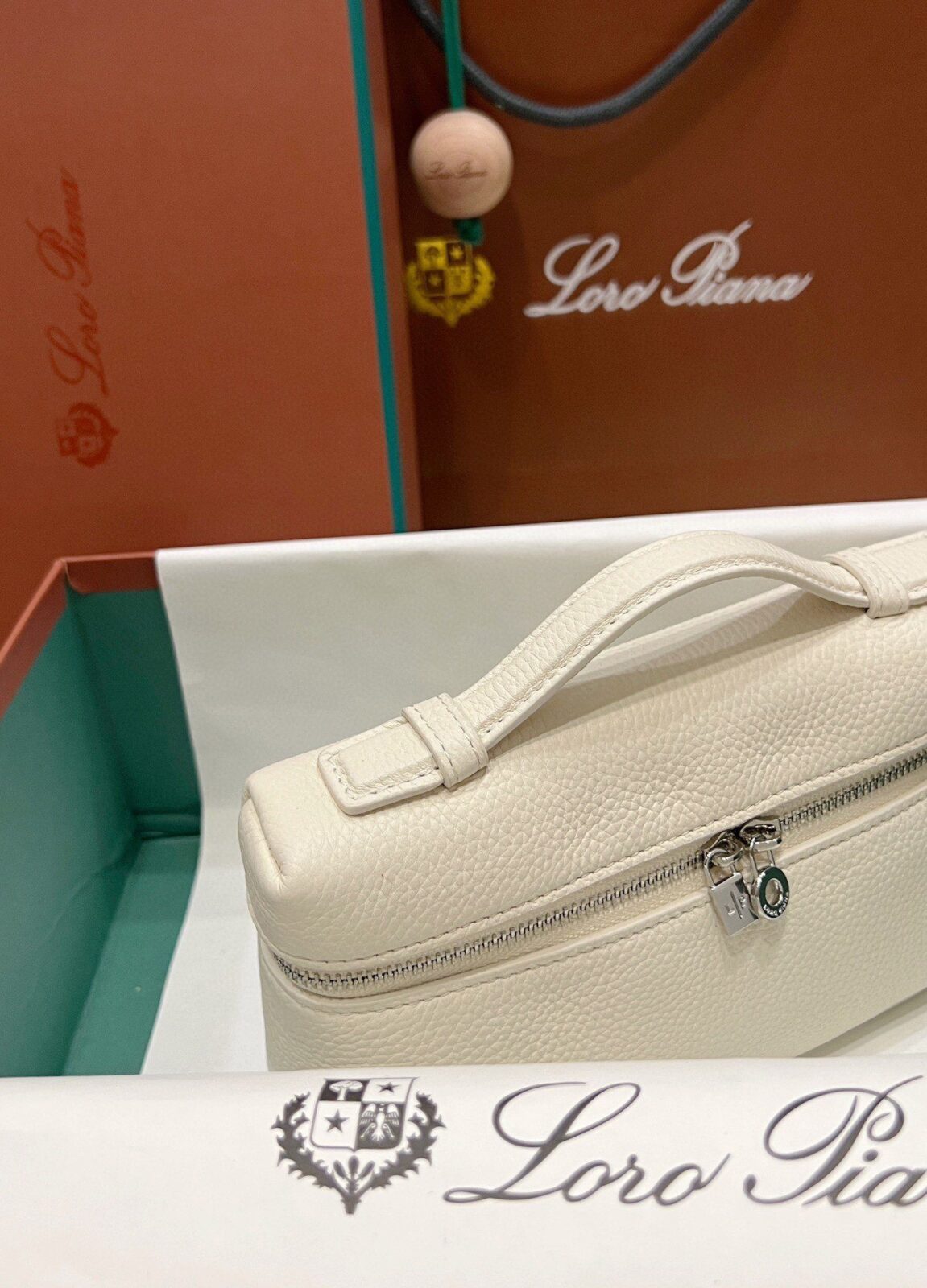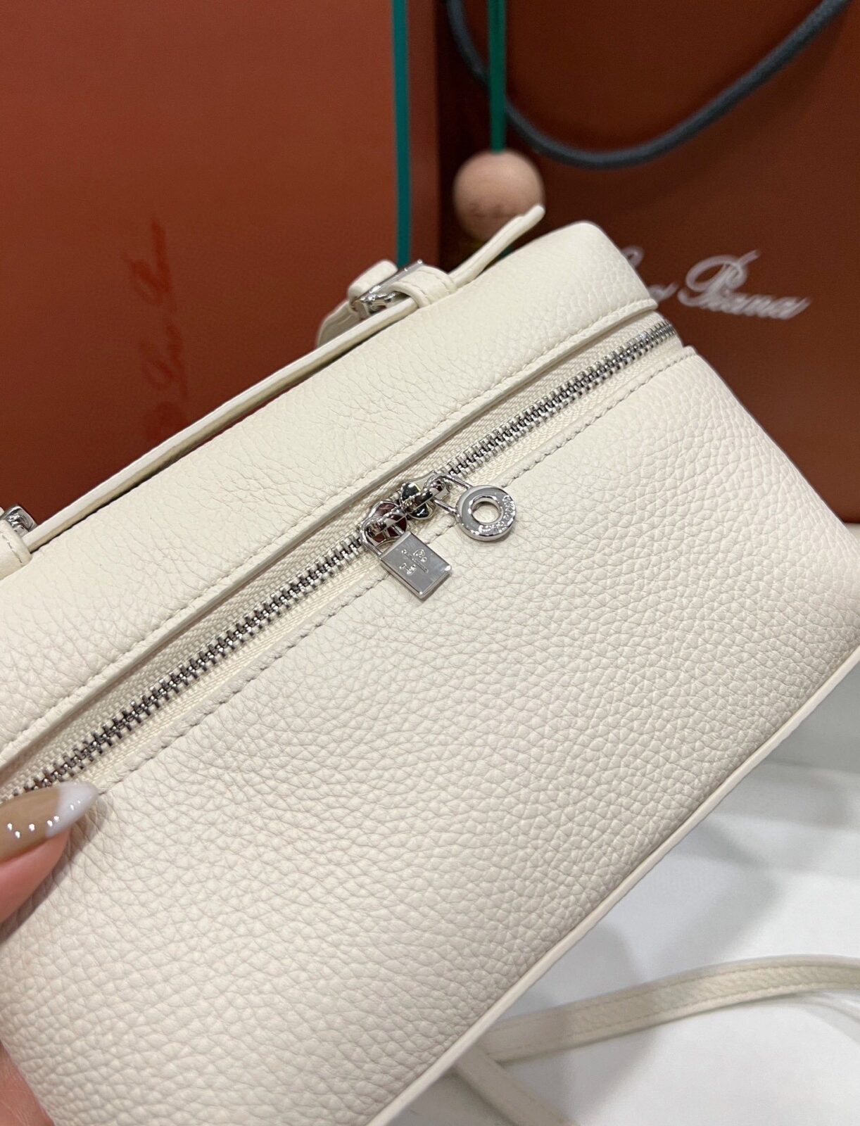 兼具美感与实用:尽管属于 L19 的“迷你”尺寸,但其方正的化妆箱式廓形内部空间却出人意料地宽敞,足以轻松收纳手机、钥匙和卡片。宽敞的双拉链开口饰有标志性的银色 LP 吊坠,不仅确保了取物的便捷性,更赋予了这款极简主义杰作一种宛若珠宝般的精致点缀。