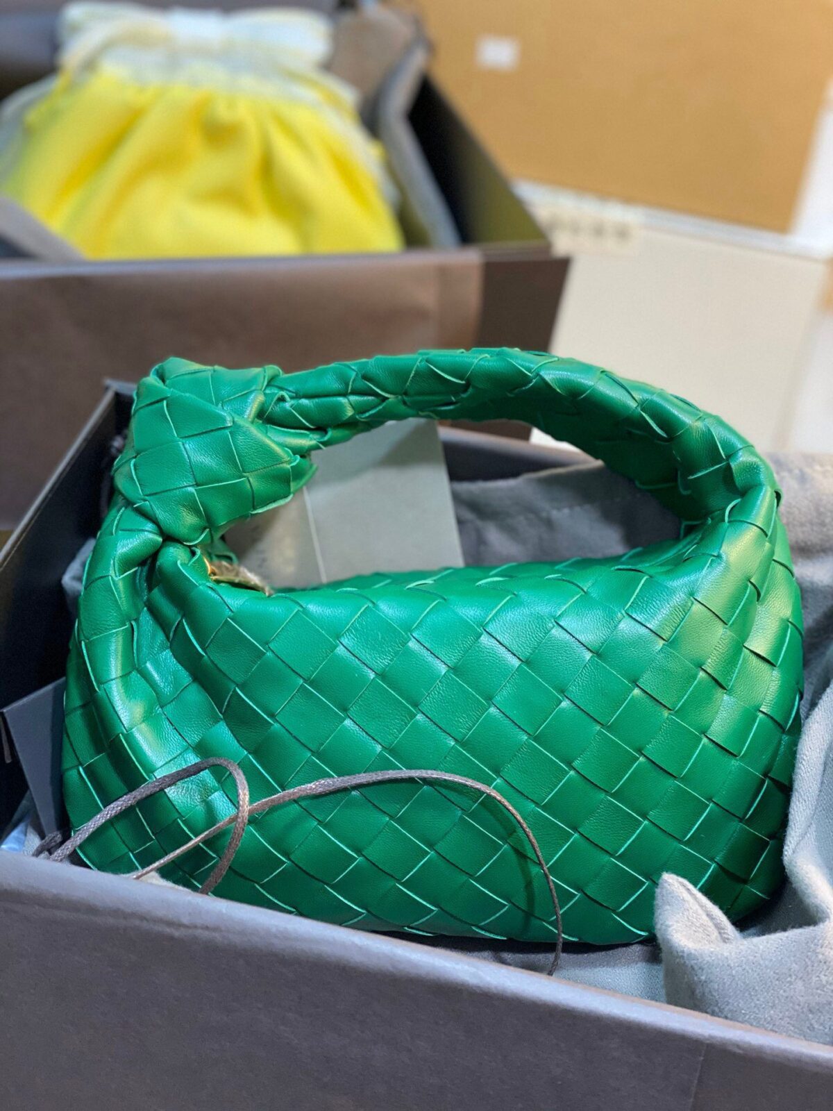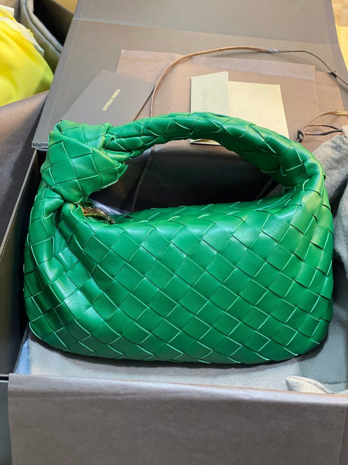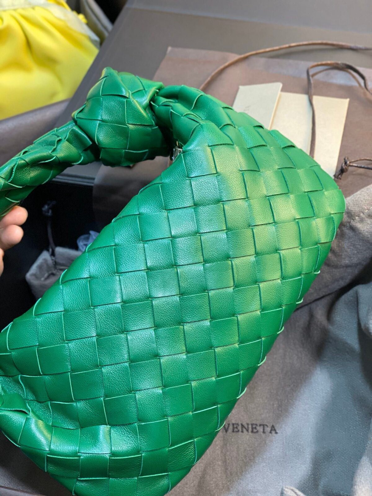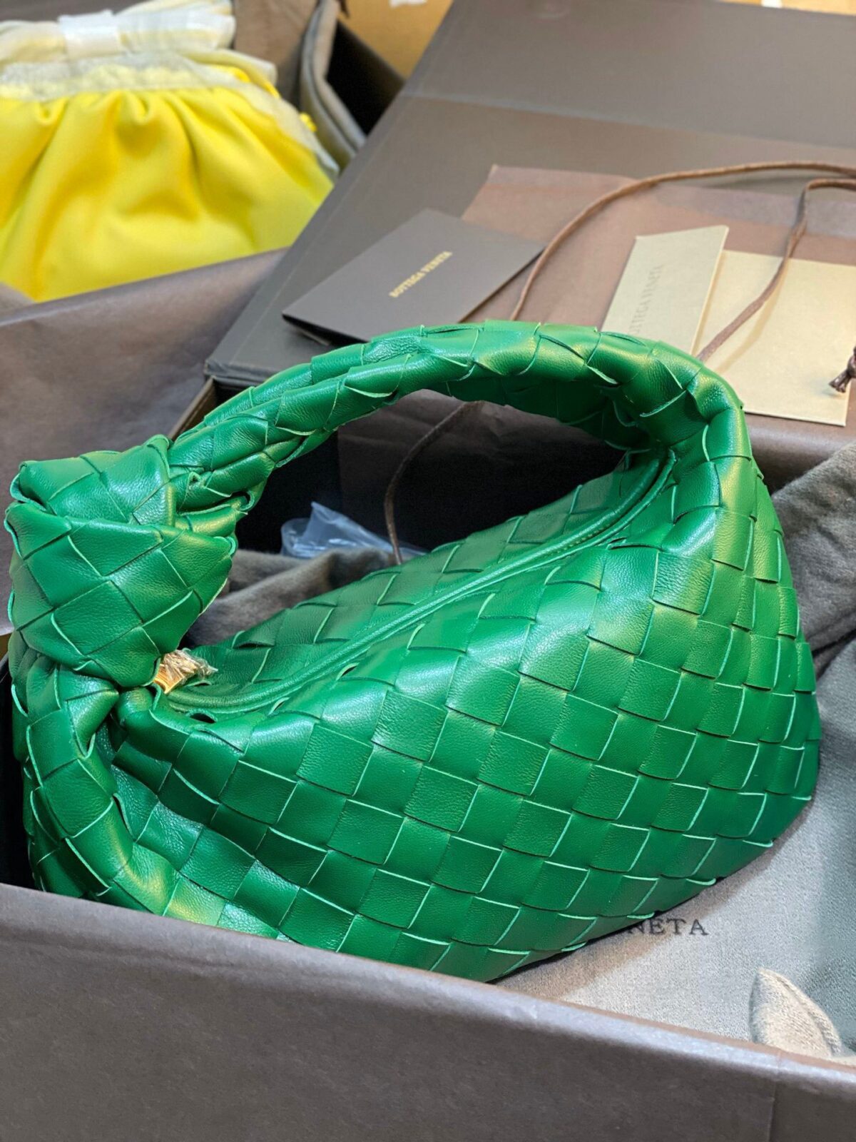 (注:首图中展示的黄色包袋似乎是光滑皮质款的 Mini Pouch,而其余包袋均为编织款 Jodie 系列。)