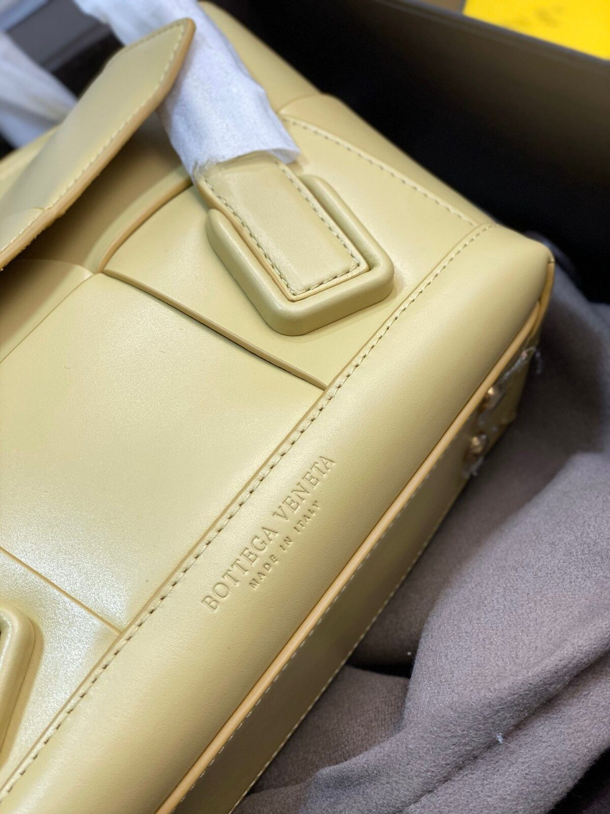 **现代建筑设计:** 这款包袋以米兰著名的“和平门”(Arco della Pace)命名,其解构式的垂直交错巨型编织工艺,是对品牌经典“Intrecciato”编织技艺的现代演绎。