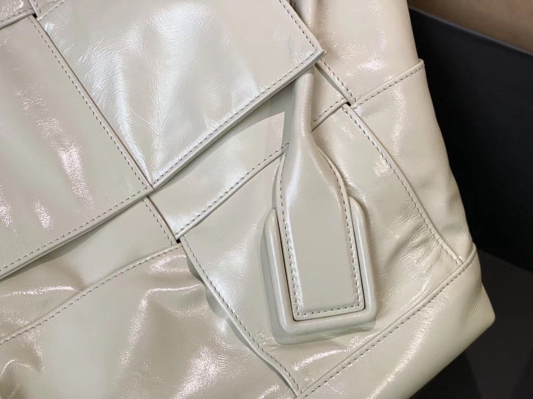 **个性宣言:** “白色漆皮”版本增添了一抹流光溢彩的华丽感,将原本充满建筑感的包身轮廓转化为大胆前卫的时尚宣言,在光影流转间尽显瞩目风采。