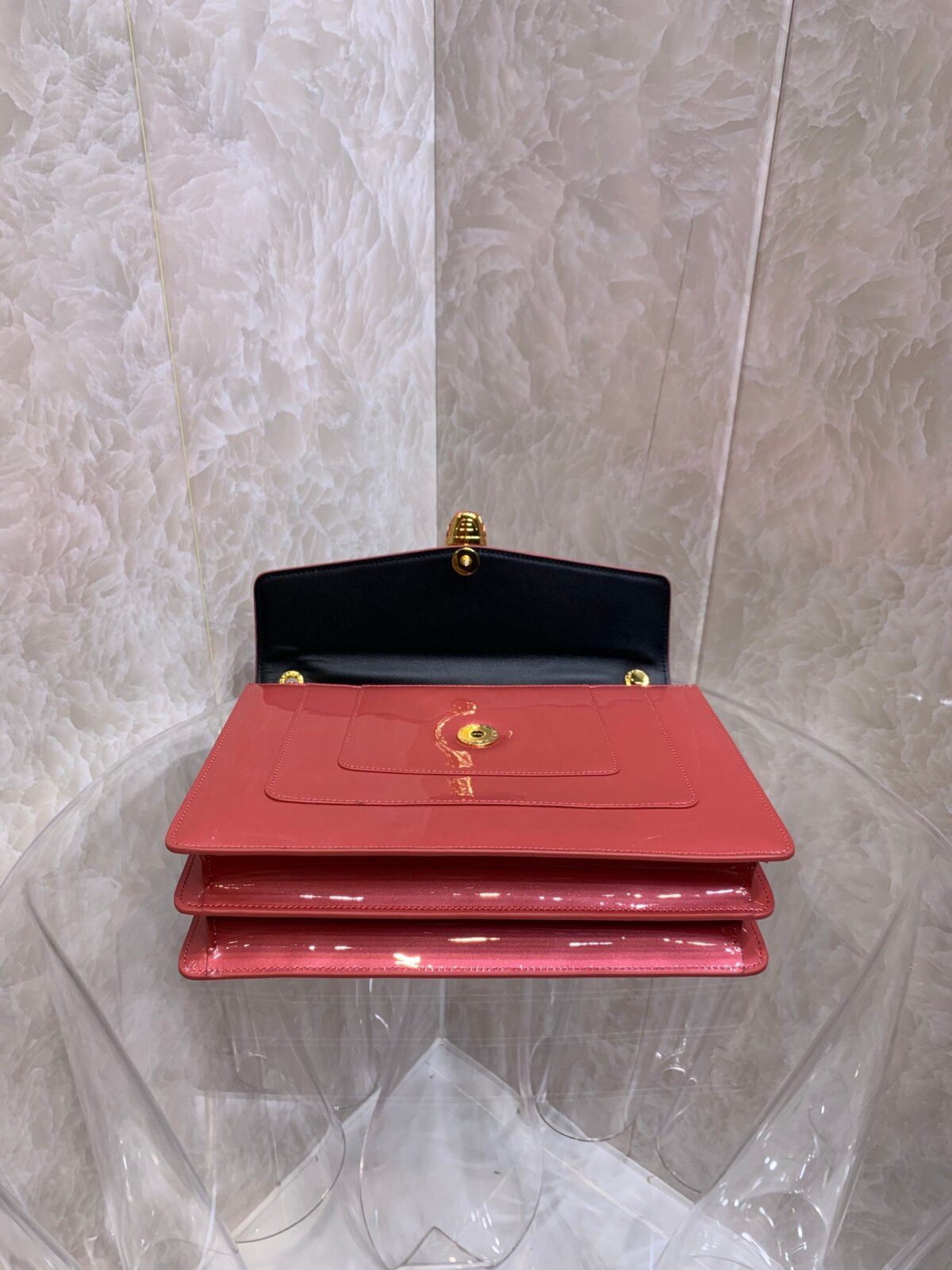 **皮具领域的至臻瑰宝** 汲取宝格丽(Bvlgari)作为罗马珠宝世家的深厚底蕴,Serpenti Forever 单肩包堪称集魅惑与优雅于一身的杰作。这款“IT Upgraded”(升级版)选用纹理无瑕的上乘皮革精心打造——无论您偏爱如宝石般晶莹闪耀的**亮面漆皮**,还是钟情于低调内敛、尽显经典格调的**光滑小牛皮**,皆能满足您的品味需求。