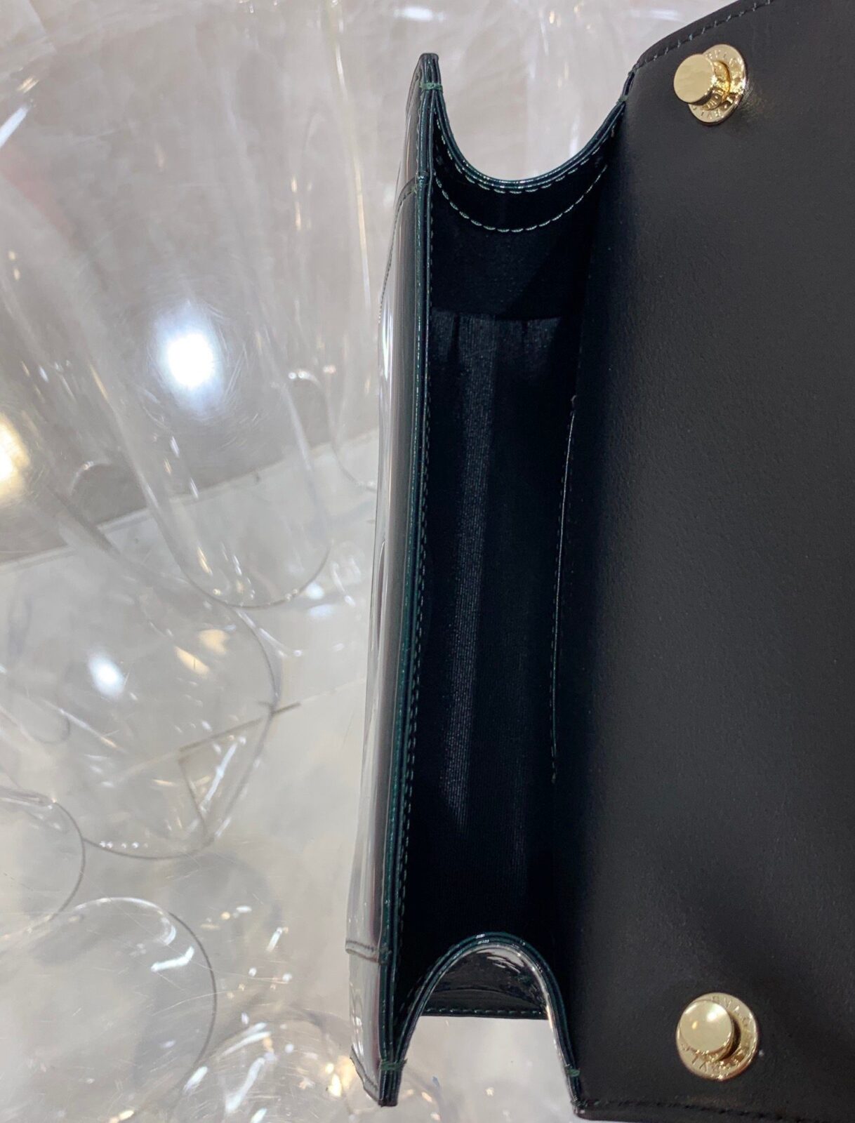 **高光漆皮:** 呈现“晶透”般的通透质感,散发出如珠宝般璀璨迷人的光泽(提供绿色、粉色、深绿色及黑色可选)。