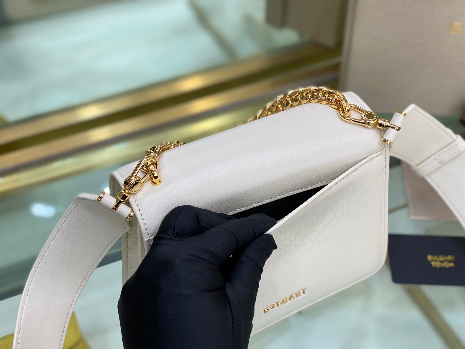 **大胆重塑经典传奇** Bvlgari Serpenti Forever Maxi Chain 包袋完美捕捉了现代大胆精神的精髓。这款包袋对品牌传奇传承进行了全新演绎,将经典的蛇头图腾与极具现代感的超大号 Maxi Chain 链条手柄巧妙结合;链条优雅地垂落在翻盖之上,宛若一条精美的项链。