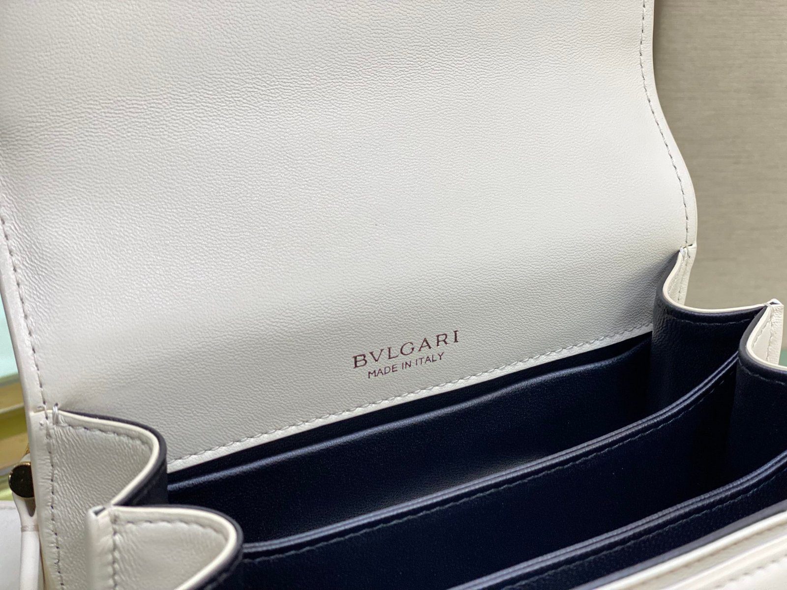 **小号顶部手柄款尺寸**:造型精致小巧,其优雅轮廓的设计灵感源自 Bvlgari 20 世纪 60 年代的复古腕表。尺寸:18厘米(宽)x 15厘米(高)x 9.5厘米(深)(约 7.1英寸 x 5.9英寸 x 3.7英寸)。