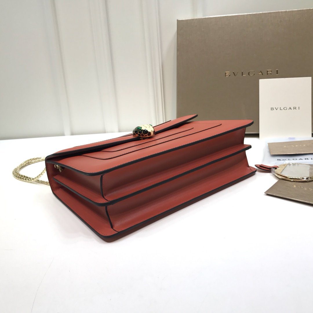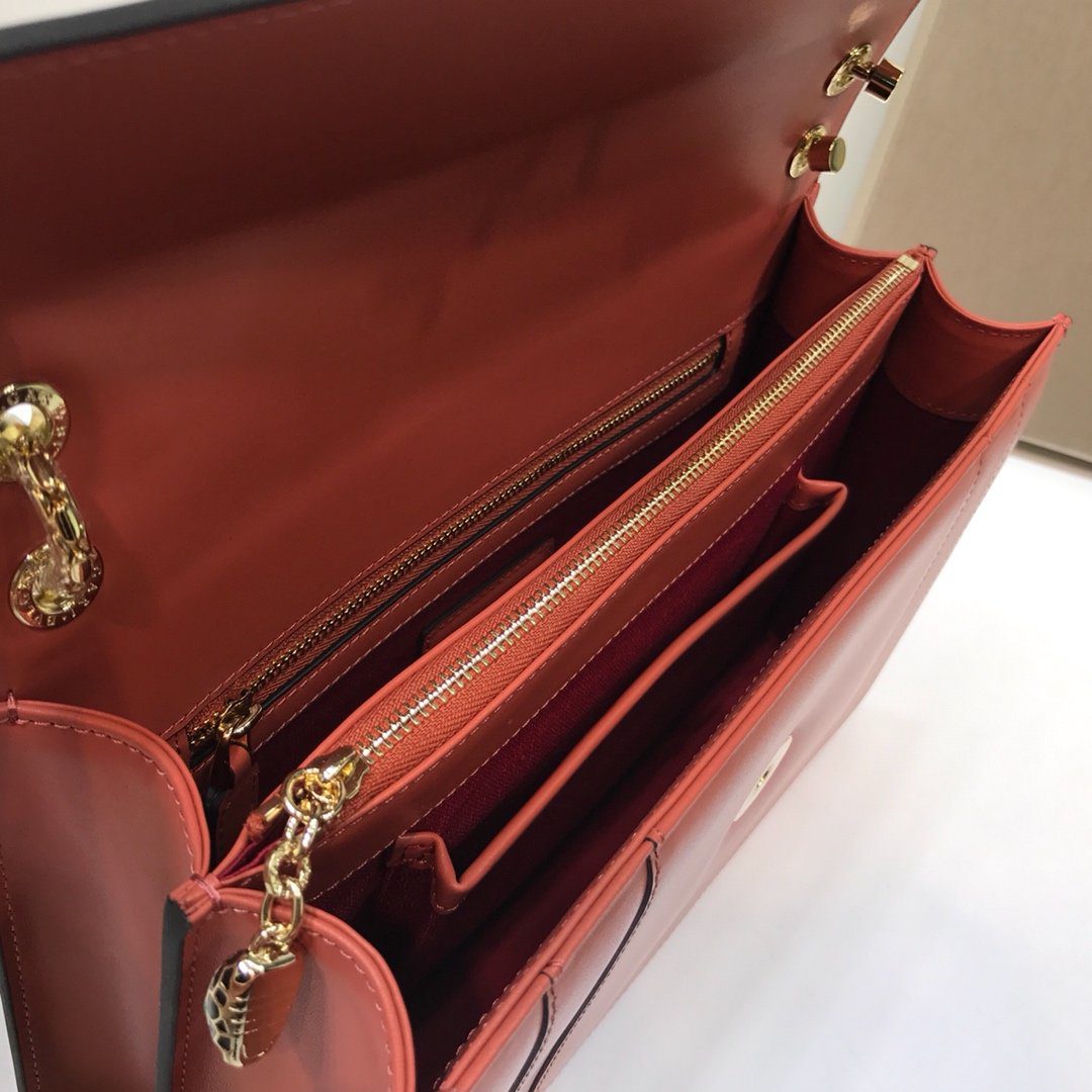 经典与前卫的完美平衡——用这款 Bvlgari Serpenti Forever 顶部手柄包彰显您的独特格调。这款包袋尺寸宽裕(28厘米),型号为 35362,完美实现了对品牌标志性奢华风范的“零距离复刻”。包身选用进口顶级小牛皮精制而成,触感顺滑且廓形挺括,为品牌最著名的标志性图腾提供了完美的呈现载体。