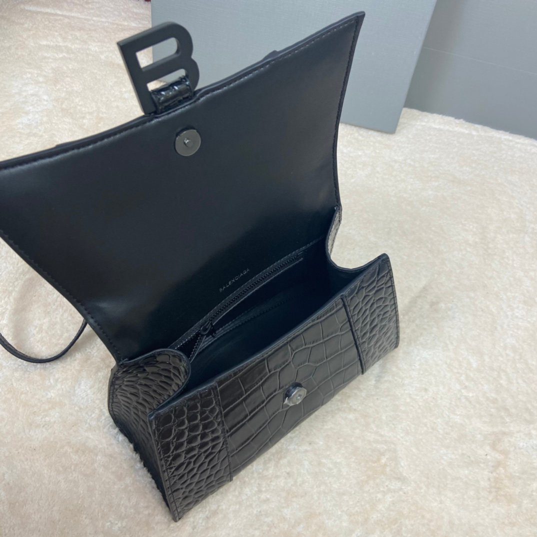 **现代经典之作** 佩戴 Balenciaga Hourglass 手袋,定义您的专属风格。这款单品注定成为备受追捧的“酷感”经典。其独特的雕塑感设计——尤以底部那犀利流畅的“半月”弧线为标志——极具辨识度,助您在人群中脱颖而出。它集优雅、精致与强烈的个性魅力于一身。