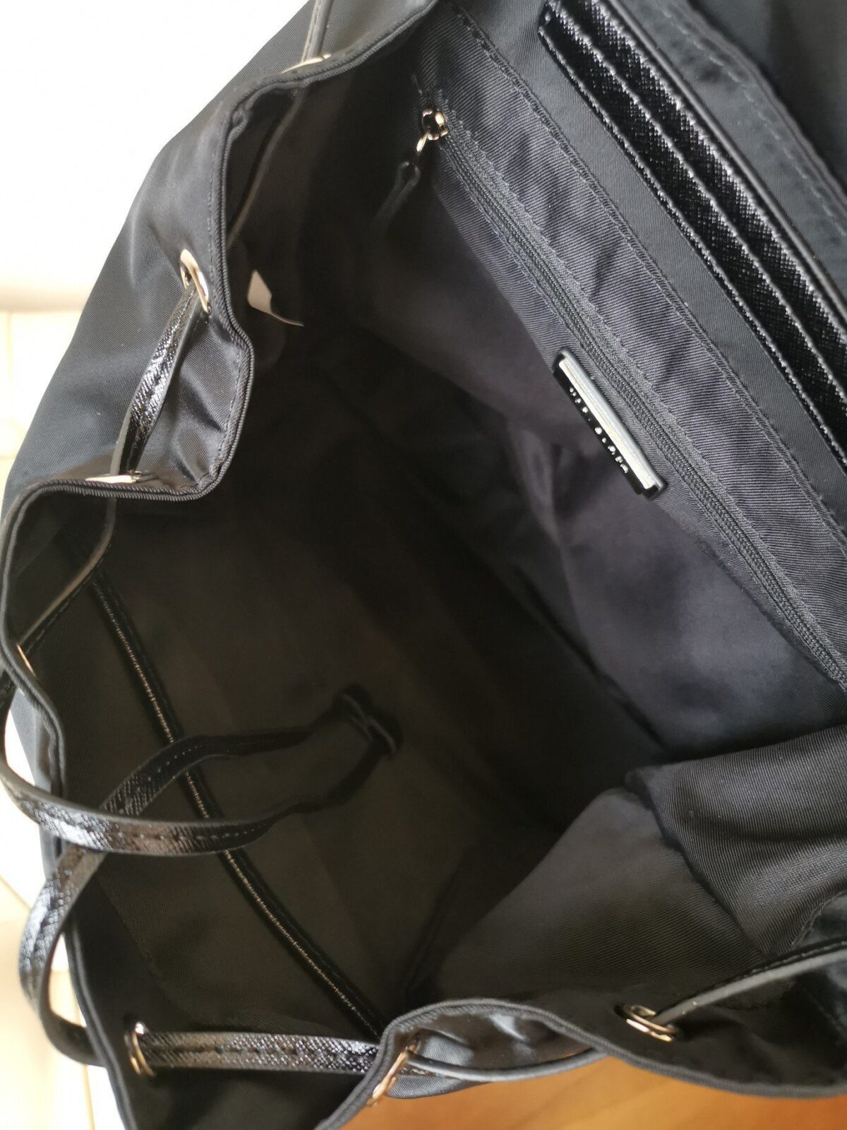 外部布局:2 个前置口袋(配搭扣装饰)、2 个侧边水瓶袋、1 个拉链袋