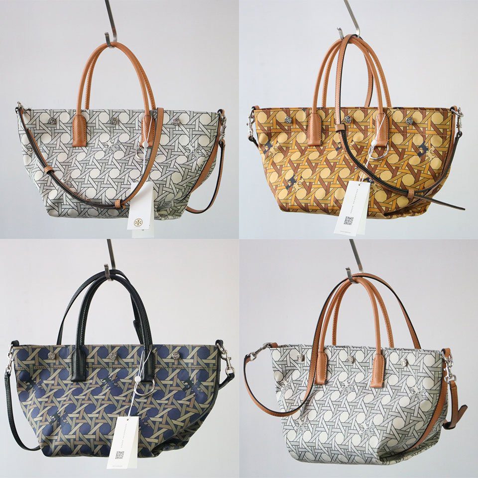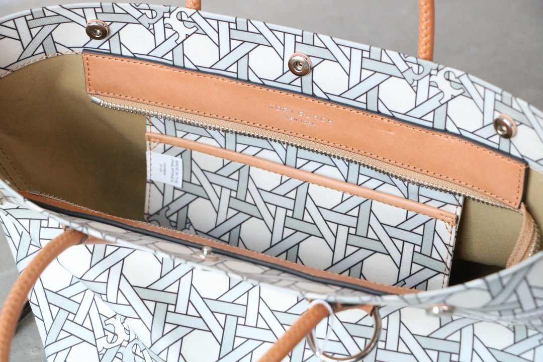 探索这款 Tory Burch 小号托特包,体验视觉幻象与实用功能的完美融合。包身饰有逼真的几何编织印花(Trompe l’oeil),既捕捉了夏日编织篮的质朴魅力,又兼具现代尼龙材质的耐用与轻便特性。