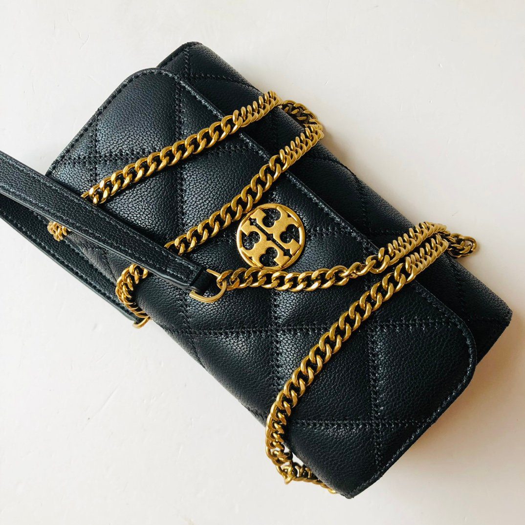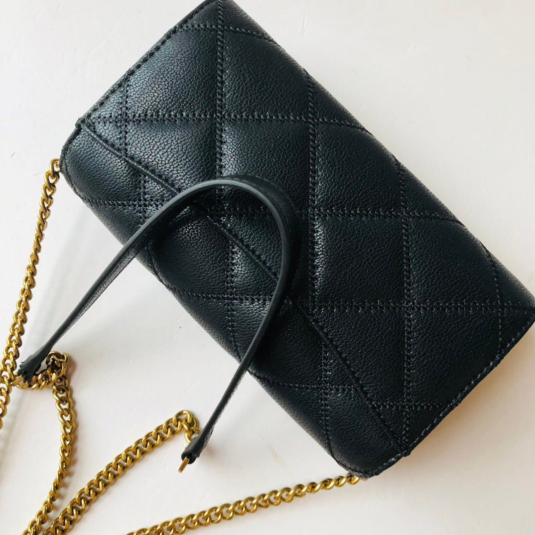 标志性美学:采用奢华的菱格绗缝工艺,并饰有双 T 字母徽标(提供金色或哑光黑色五金件可选)。