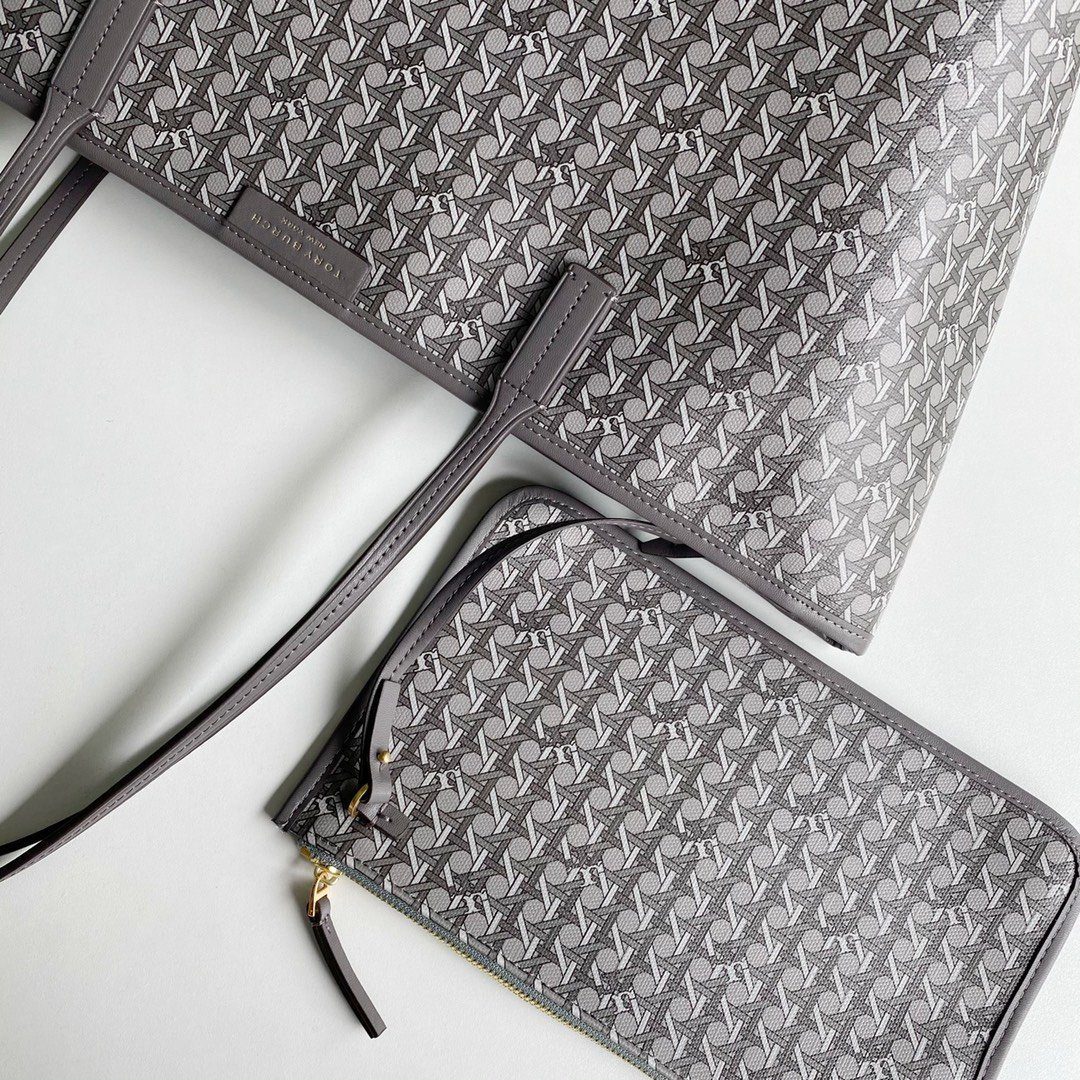 实用性是这款设计的核心理念。每一只托特包均附带一个配套的可拆卸拉链收纳袋,既可用于妥善收纳贵重物品,亦可单独作为手拿包或腕包使用。该系列提供两种尺寸选择:大号(Large)容量充裕,是工作、健身或旅行的理想伴侣;小号(Small)则更为小巧精致,适合作为日常通勤包使用。此外,包袋还提供多种百搭配色,包括经典的 Tory 海军蓝、明亮的金黄色、柔和的粉色以及时尚的灰色。