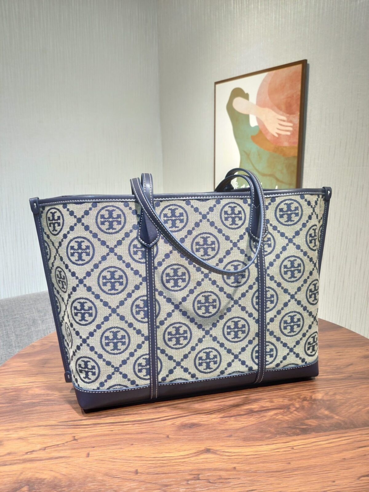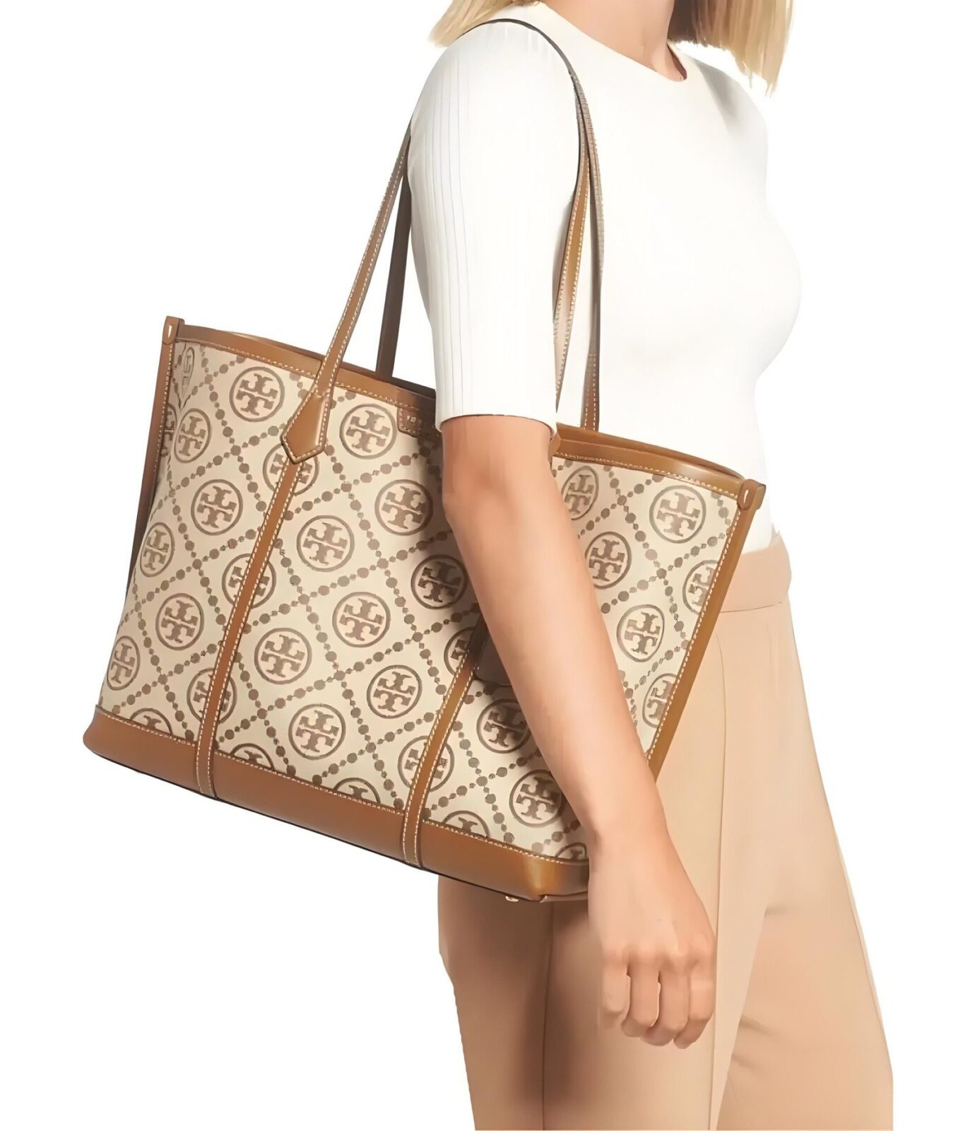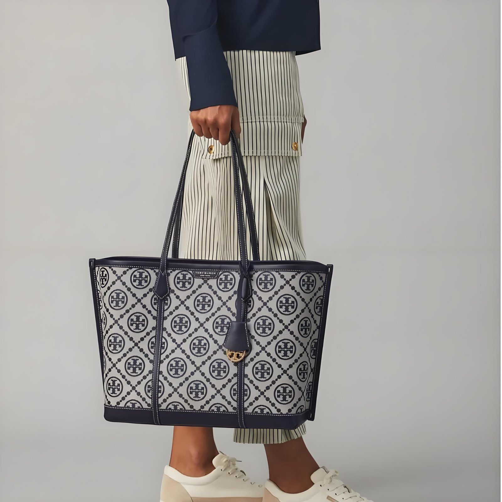 携手精致优雅的 Perry T Monogram 托特包,重新定义您的日常通勤体验。这款包袋通过精湛的编织提花工艺,生动演绎了品牌标志性的“双 T”Logo,其设计灵感源自传统的宾夕法尼亚荷兰裔(Pennsylvania Dutch)拼布艺术。