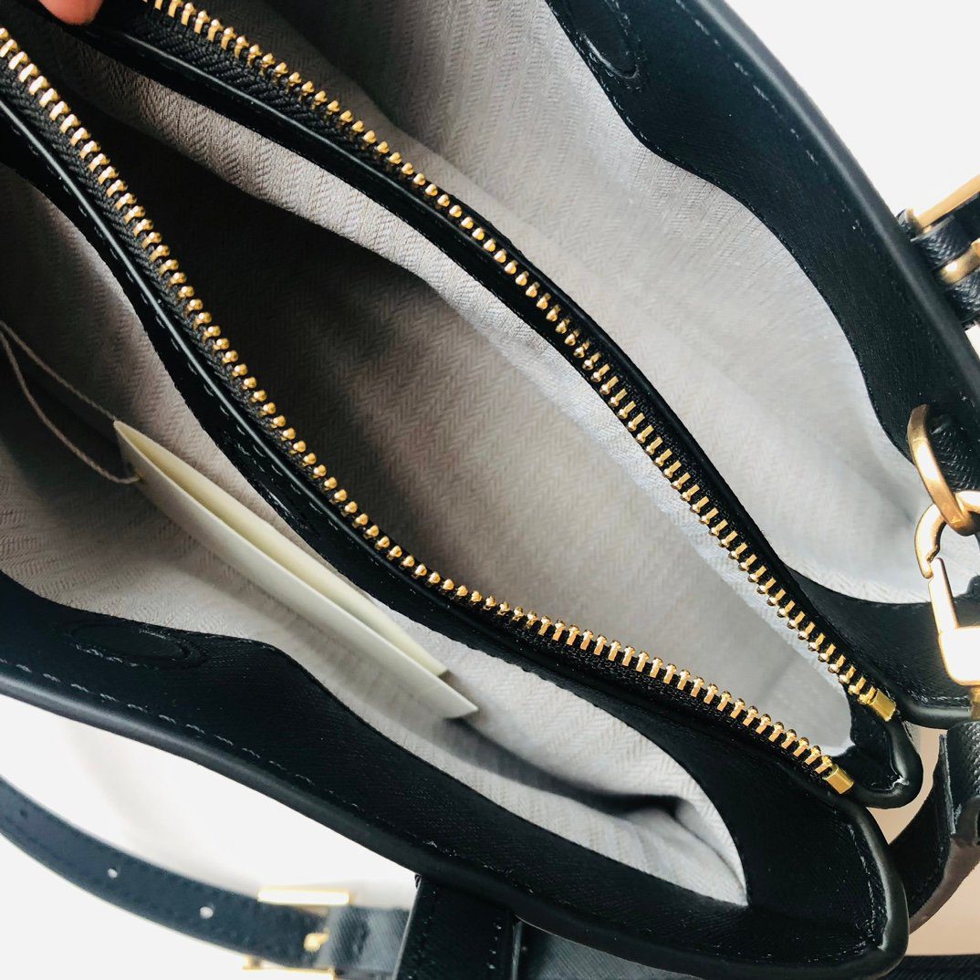 五金配件:采用抛光处理的金色五金件及品牌 Logo。