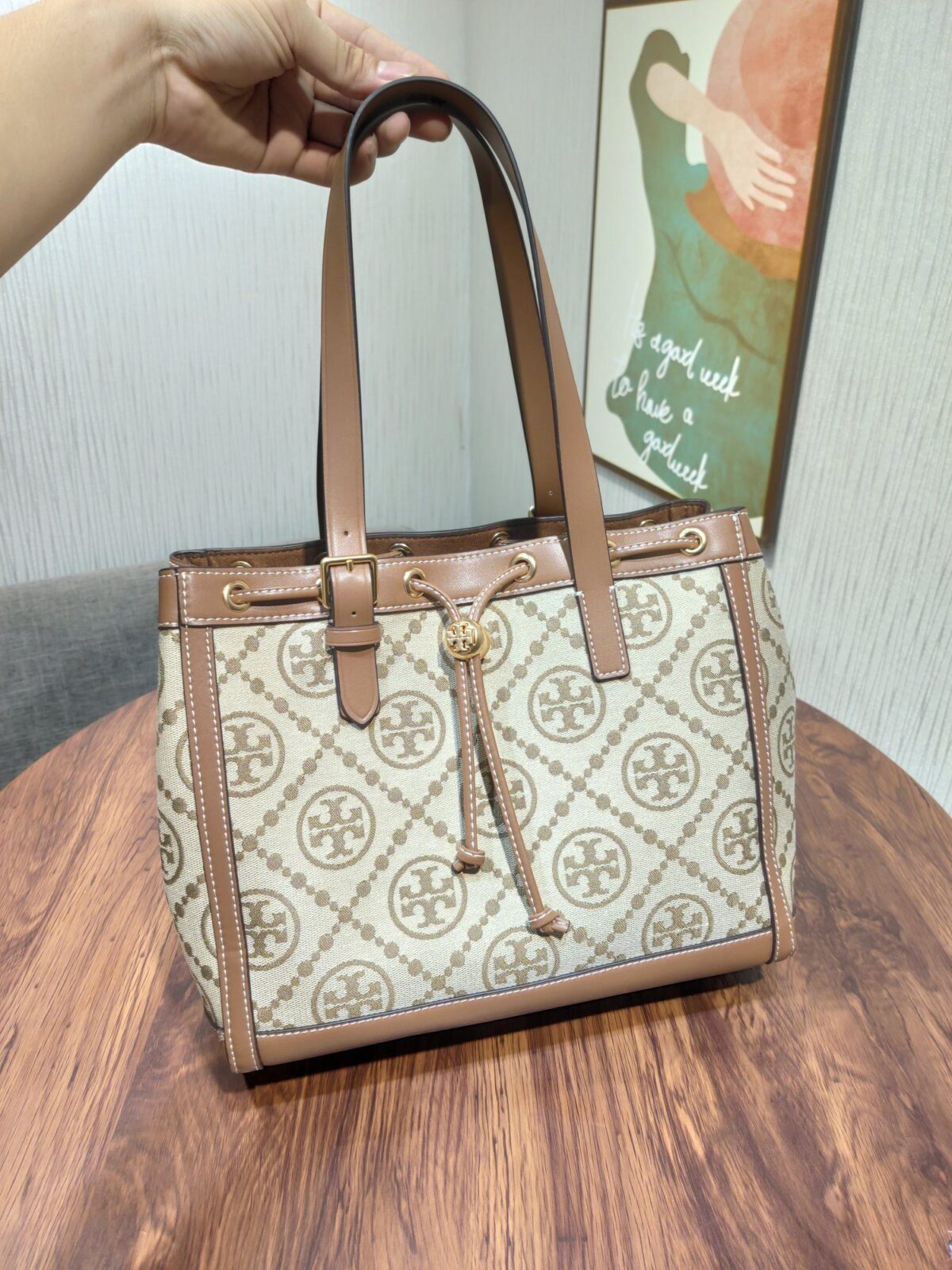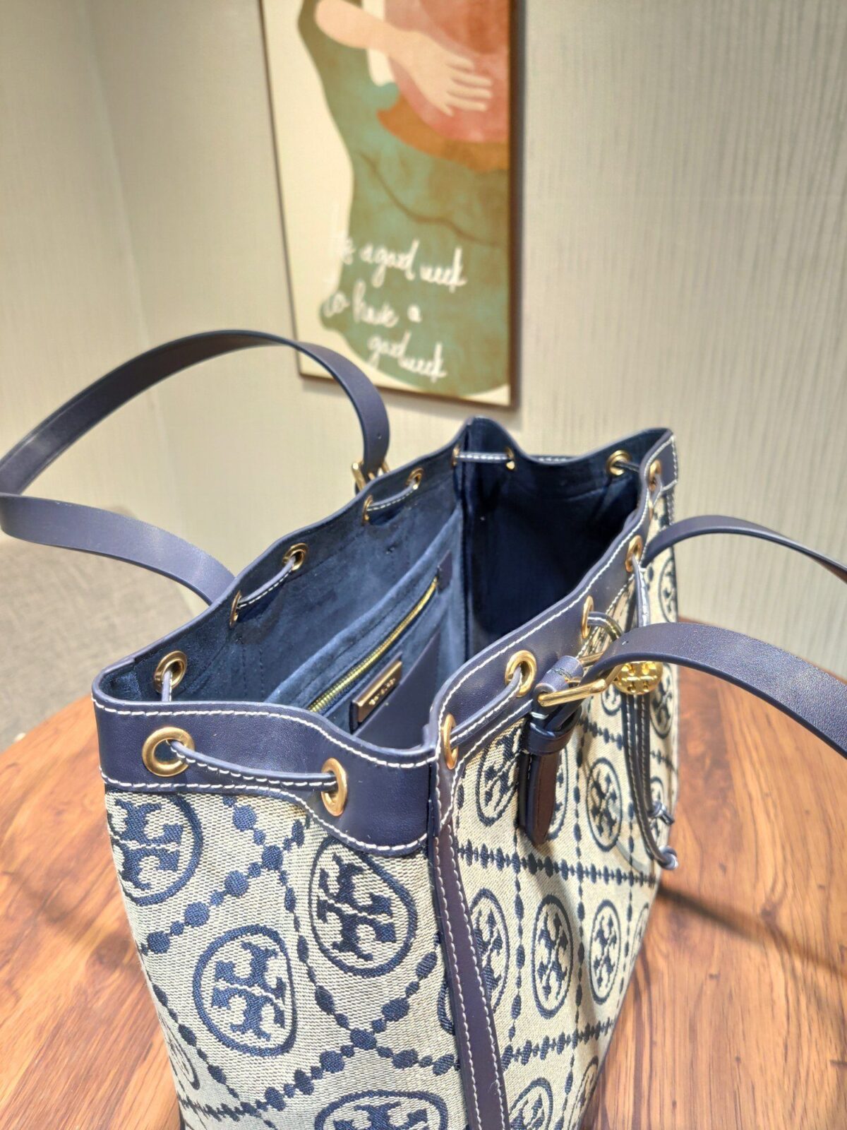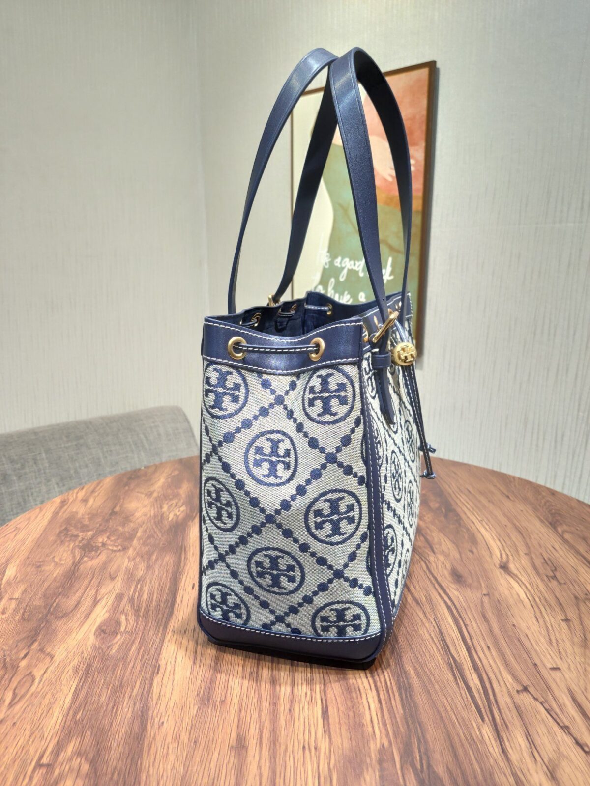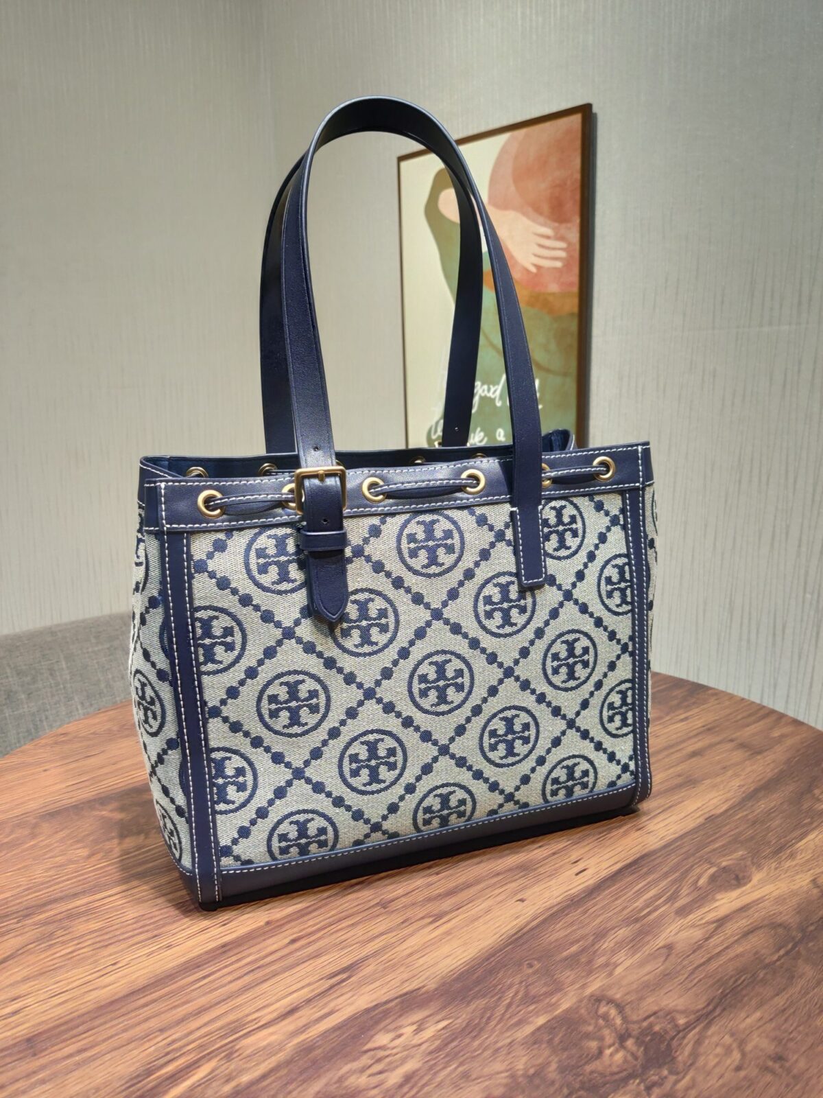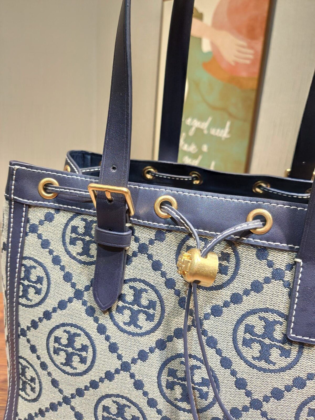 这款优雅的托特包突显了品牌标志性的 T Monogram 图案,其灵感源自传统的宾夕法尼亚荷兰裔(Pennsylvania Dutch)拼布工艺。包身采用精工细织的提花面料制成,呈现出精致考究的纹理质感,风格“经典永恒,独树一帜”。