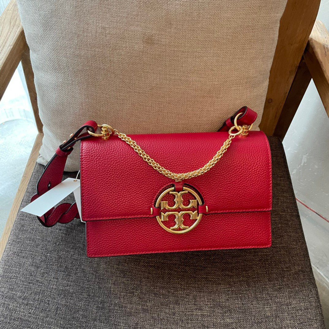 Miller 单肩包是现代精湛工艺与标志性品牌风格的完美融合。该系列的核心特色在于其醒目的“双 T”标志金属配件——这一配件既可作为机械旋锁式搭扣,亦可作为磁吸翻盖的装饰细节,并采用了精致考究的拉丝金(或称“激光金”)色调饰面。