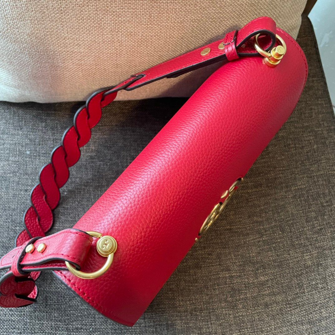 肩带:可拆卸、可调节的单肩带,饰有手工编织皮革细节及金色链条点缀。