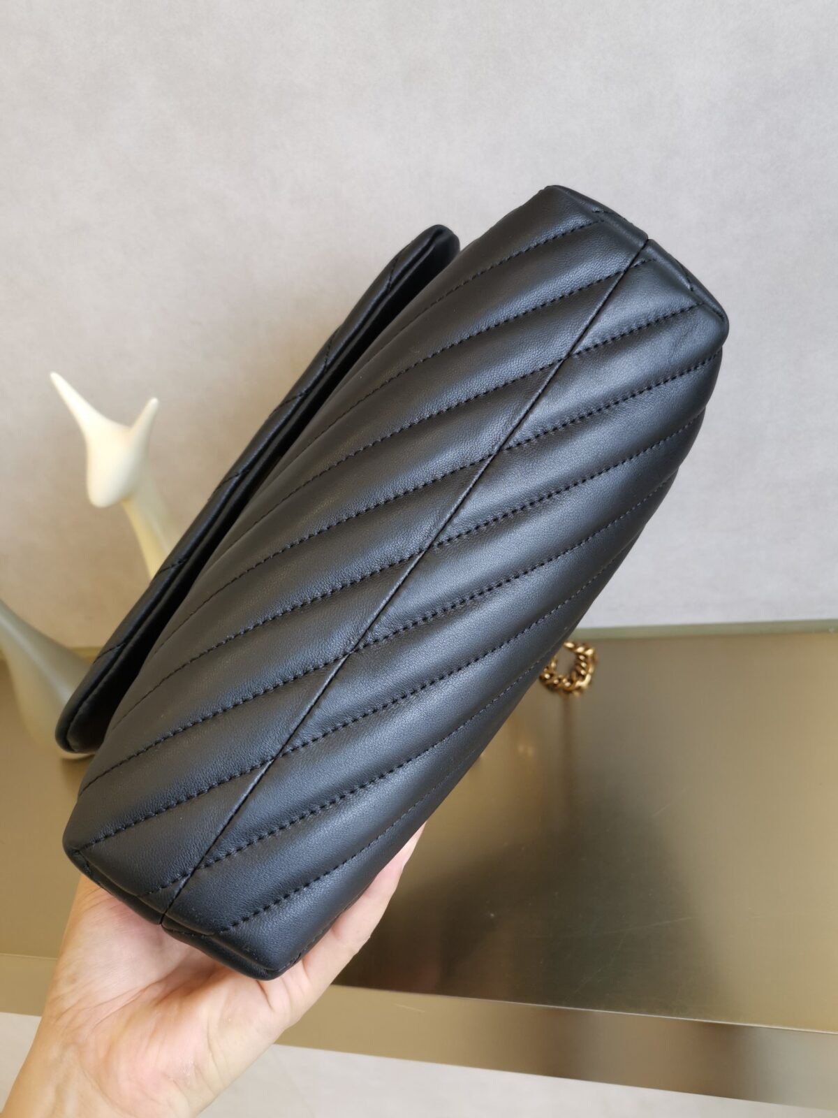 设计风格:V形绗缝工艺赋予了包袋一种极具视觉张力和方向感的线条美,兼具现代感与古典韵味。